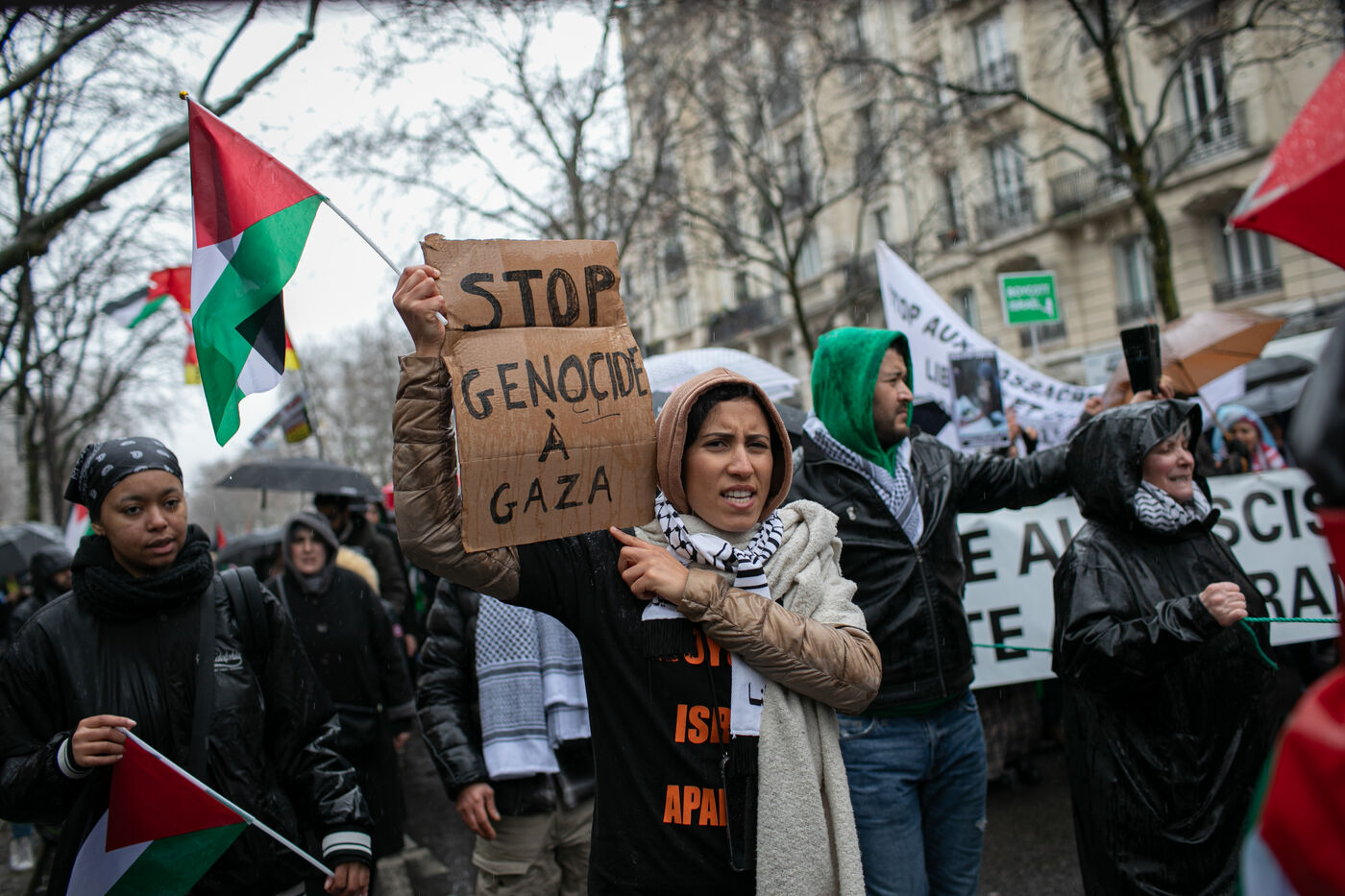 FRANCE, Paris 02 mars, 2024, manifestation en soutien au peuple palestinien, solidarité avec Gaza et Rafah, pour exiger un cessez le feu et la fin de l'occupation de l'État d'Israel. Photographie pour Victoria Valdivia Trigo / Hans Lucas.