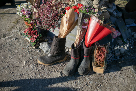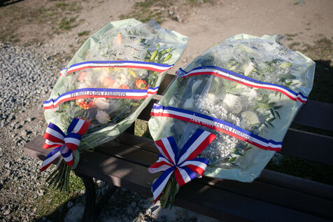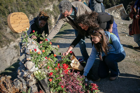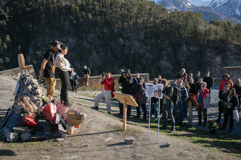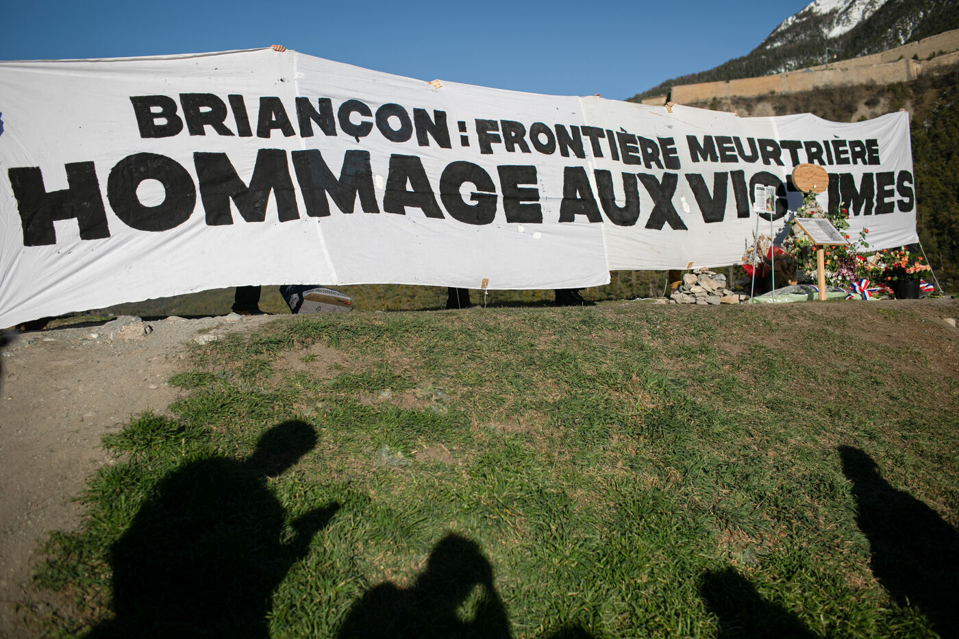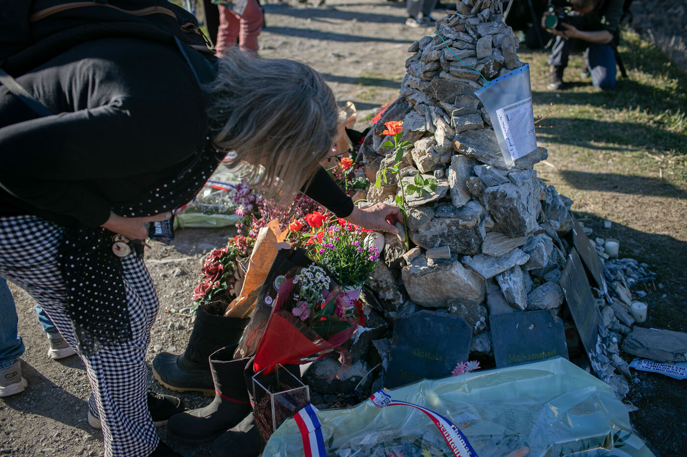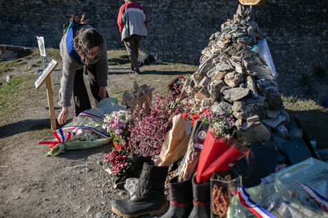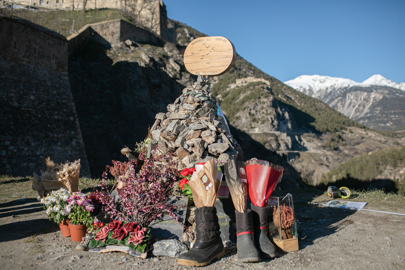 FRANCE, Briançon March 16, 2024, rally around the memorial to those killed at the border located in the Briançon fort in the presence of associations, activists and elected representatives to lay flowers at the foot of the cairn. Photography by Victoria Valdivia Trigo / Hans Lucas.
