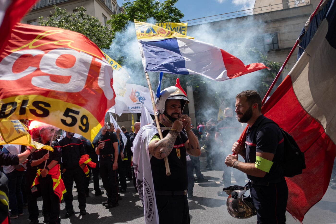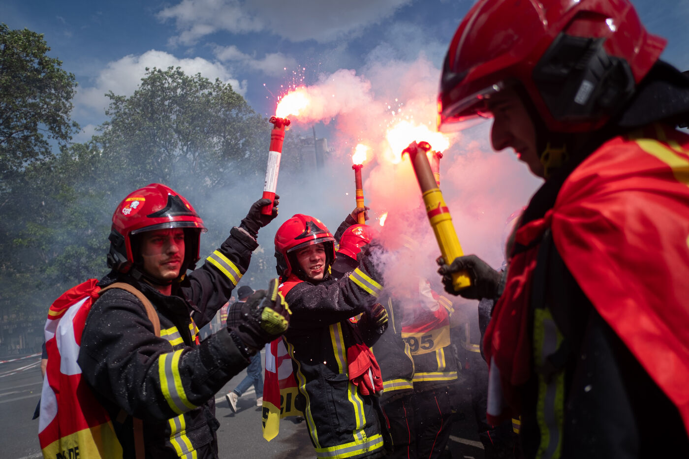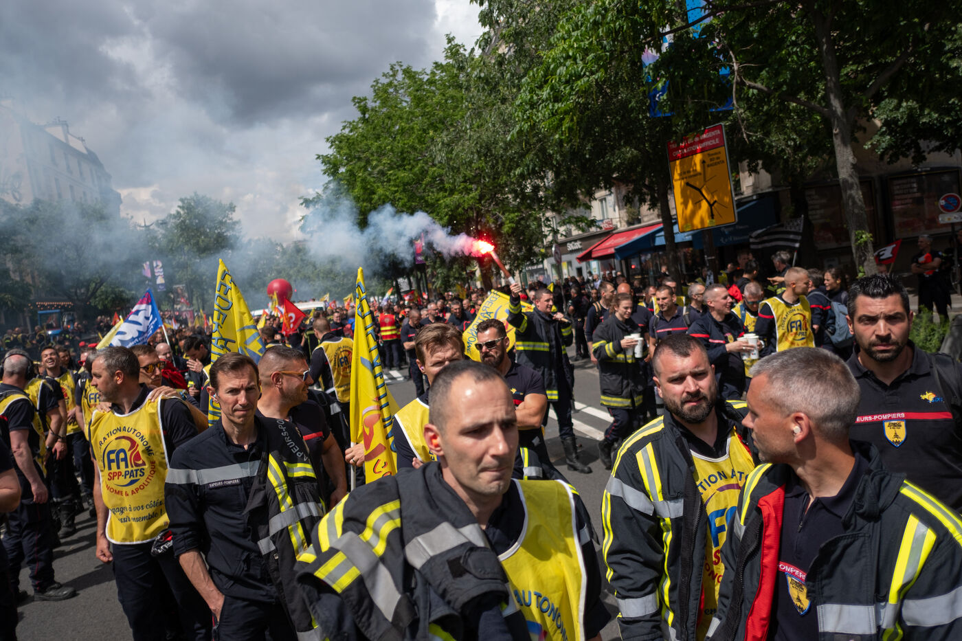 FRANCE, Paris May 6, 2024, SDIS firefighters strike. Nine firefighters' unions have joined forces to demand more resources, an increase in their firefighting bonus, and measures to protect their health and quality of life at work.
