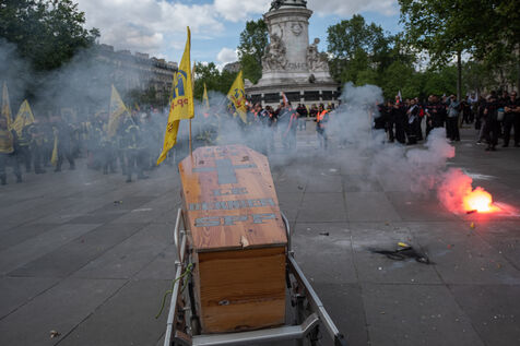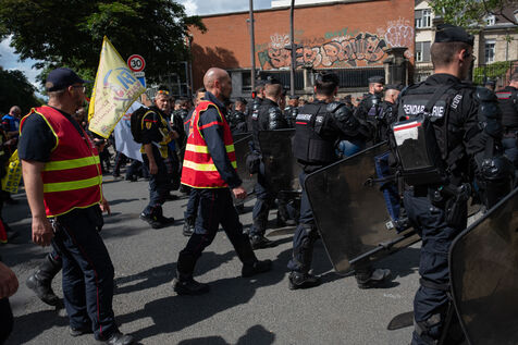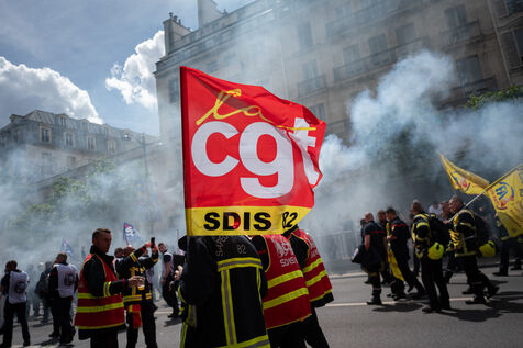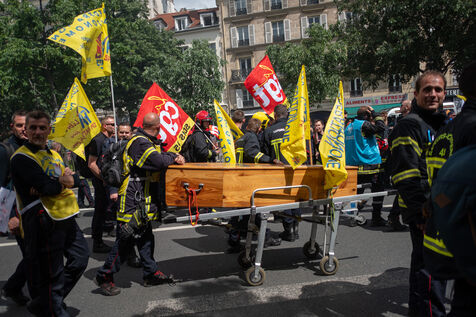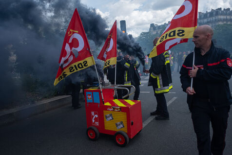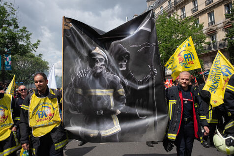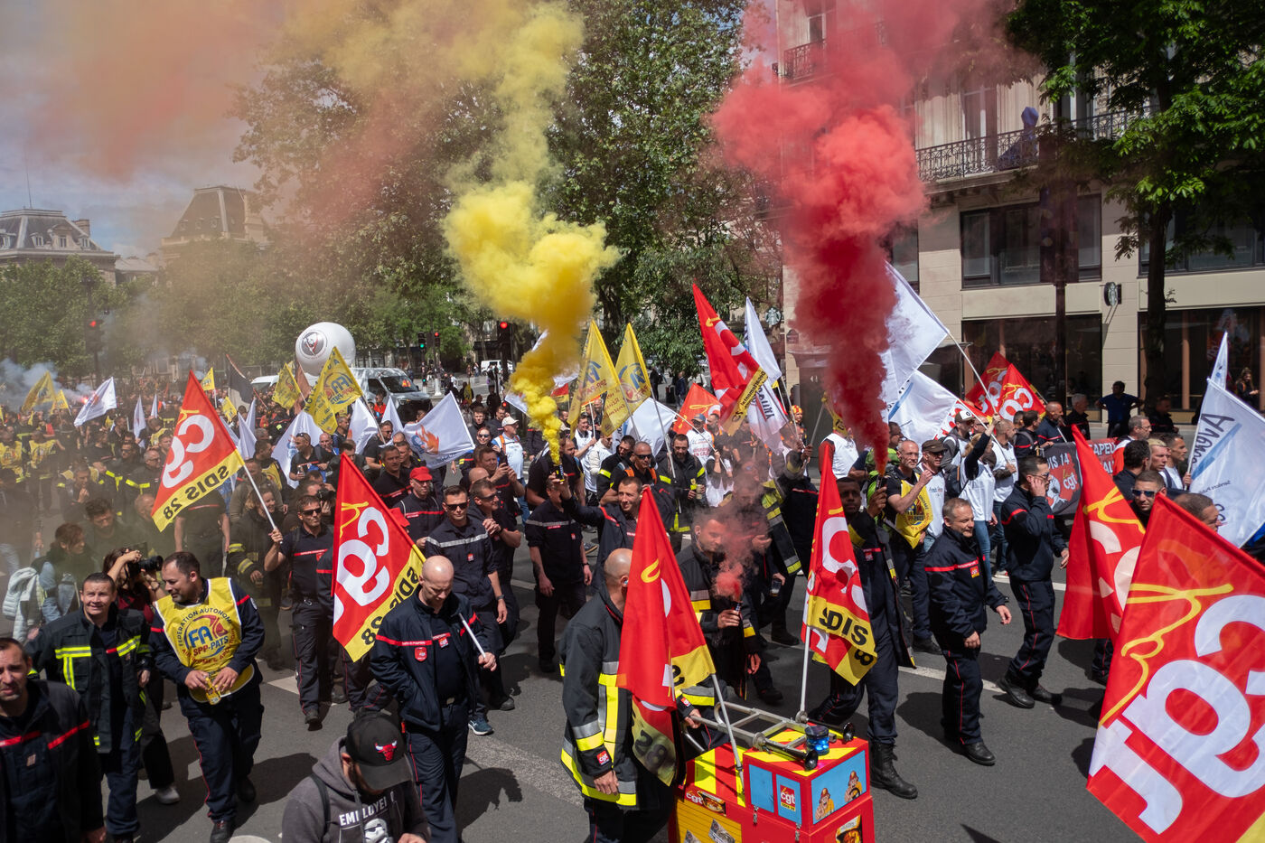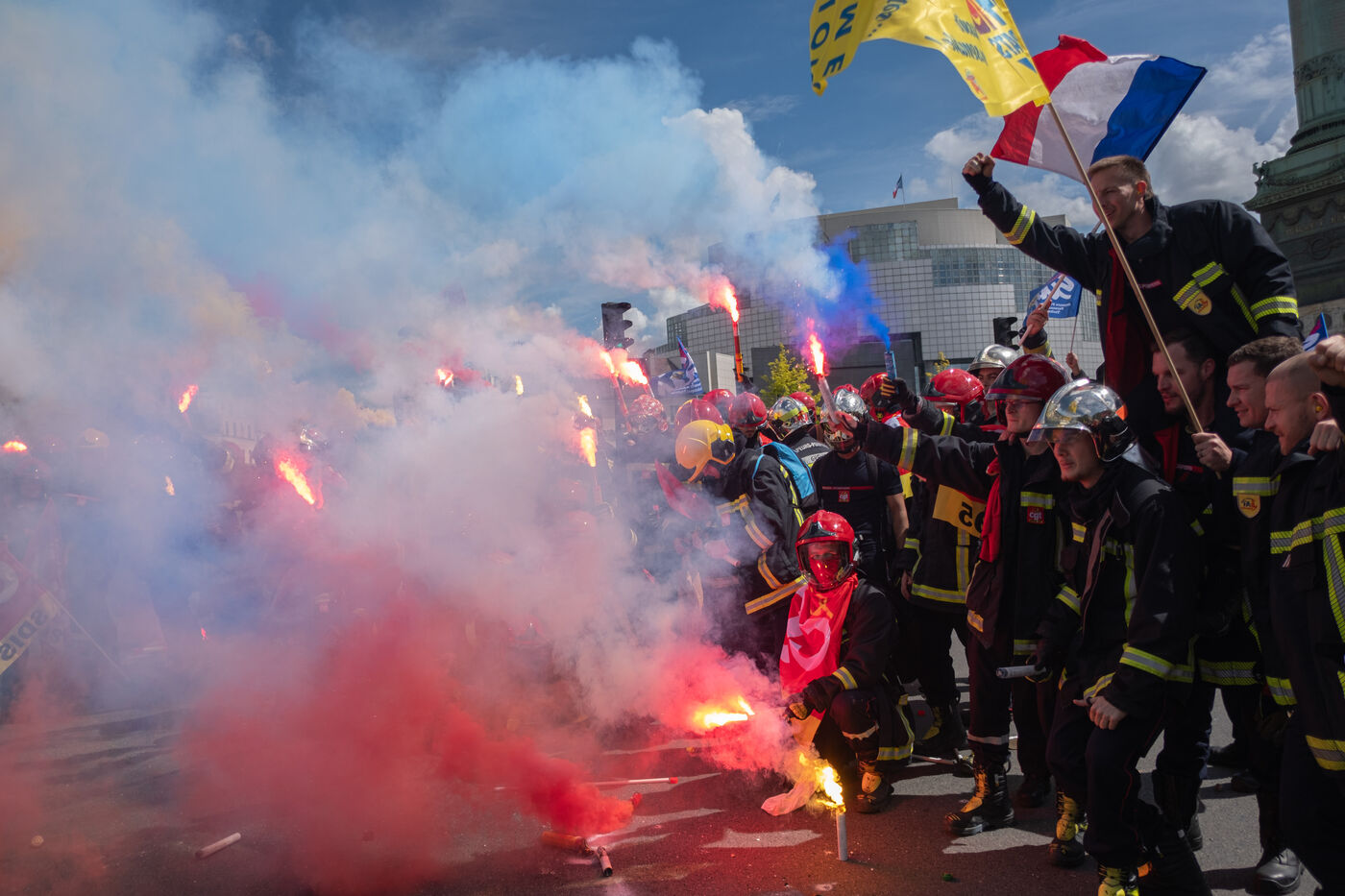 FRANCE, Paris May 6, 2024, SDIS firefighters strike. Nine firefighters' unions have joined forces to demand more resources, an increase in their firefighting bonus, and measures to protect their health and quality of life at work.