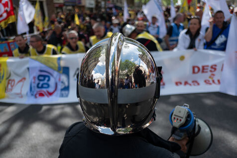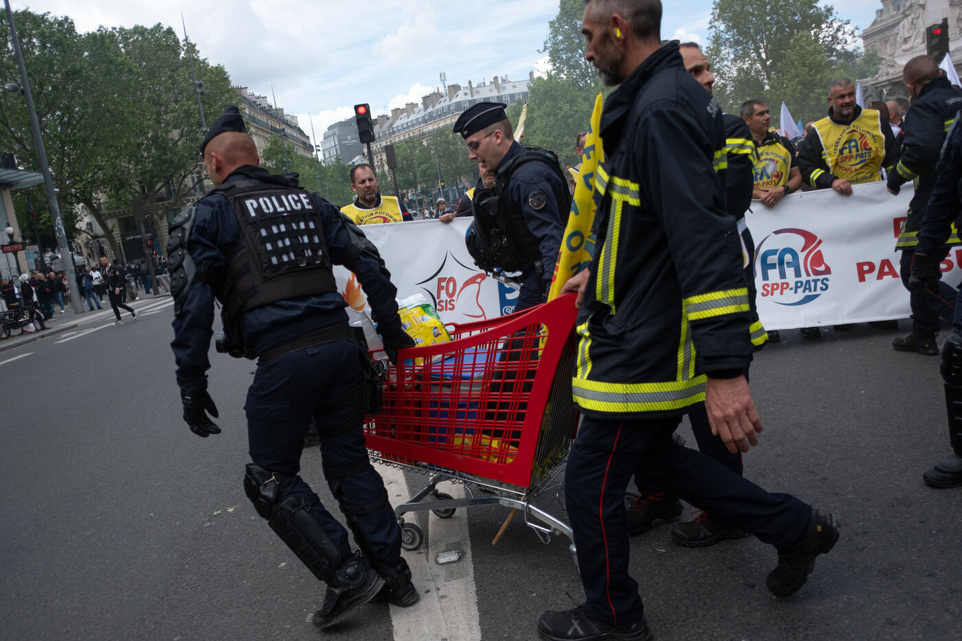 FRANCE, Paris 6 mai 2024, grève des sapeurs pompiers SDIS. Neuf syndicats des sapeurs pompiers se sont unis pour réclamer davantage de moyens, une hausse de leur prime de feu, des mesures pour protéger leur santé et leur qualité de vie au travail.