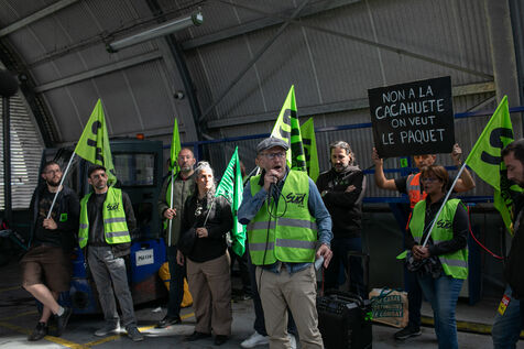 ACTION DES CHEMINOTS EN GRÈVE DEVANT LA TOUR EIFFEL