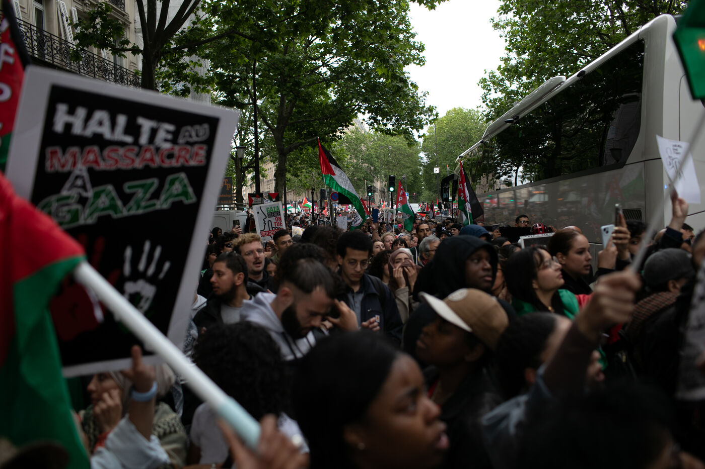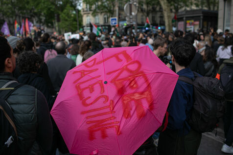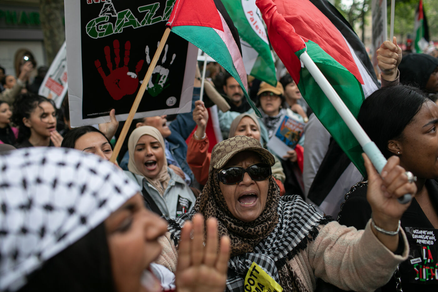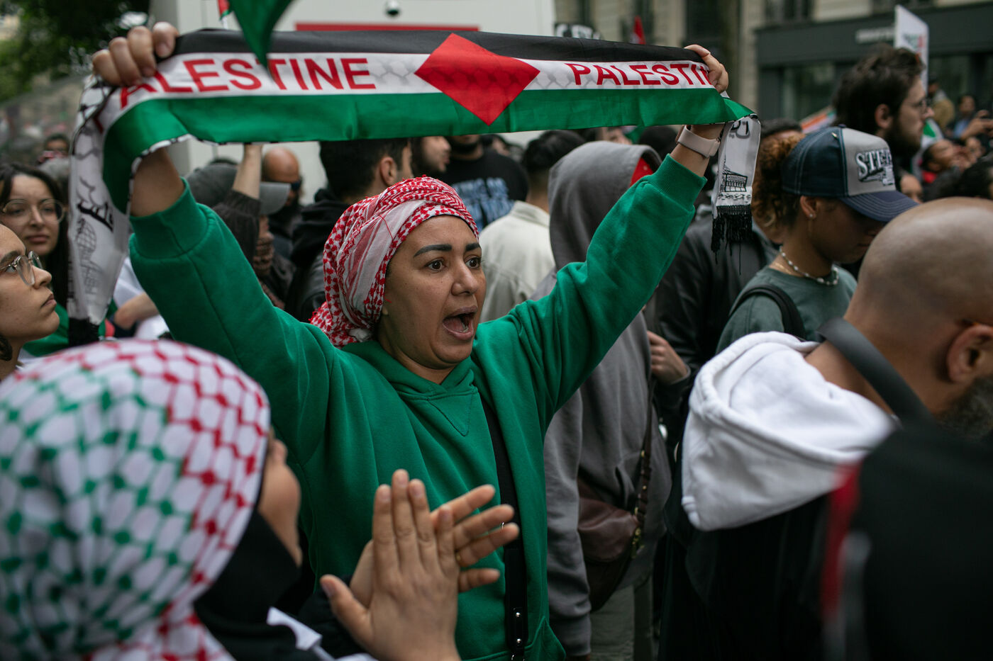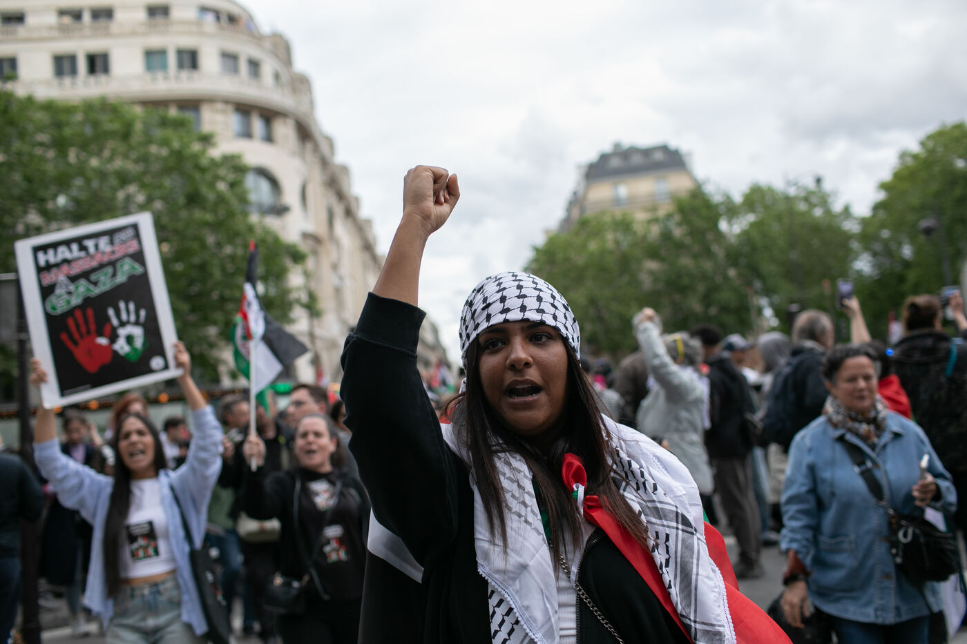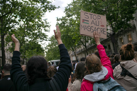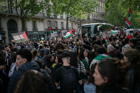 FRANCE, Paris May 27, 2024, demonstration in support of the Palestinian people after the bombing of the Rafah camp for displaced persons. Photography by Victoria Valdivia Trigo / Hans Lucas.