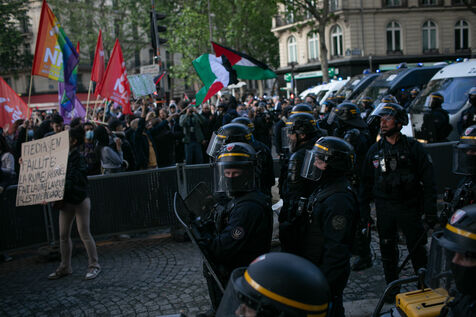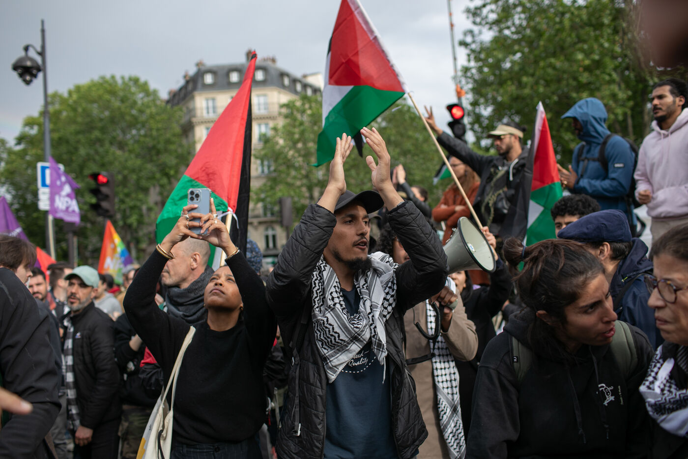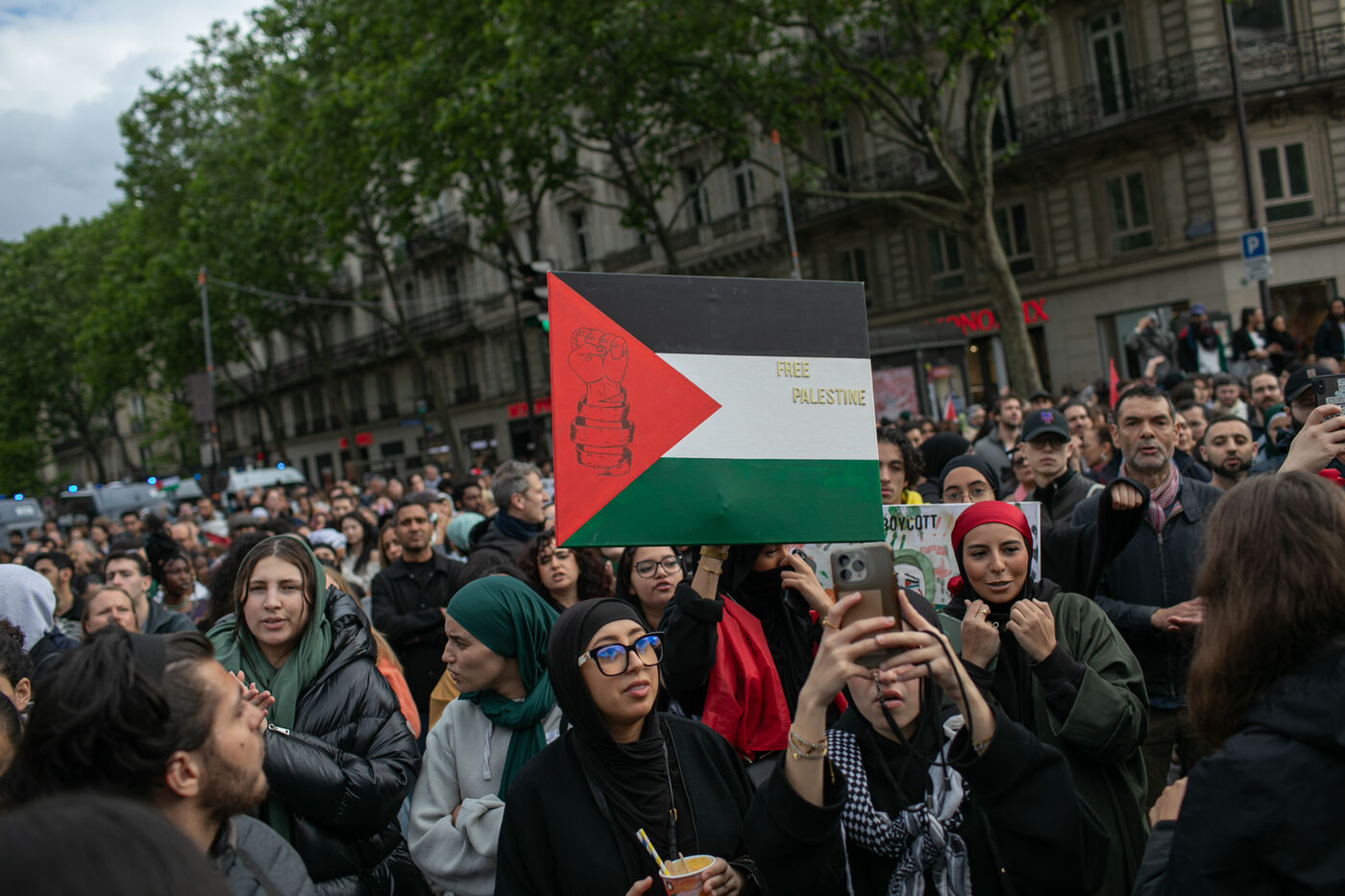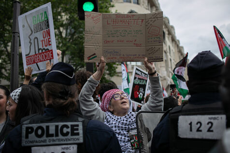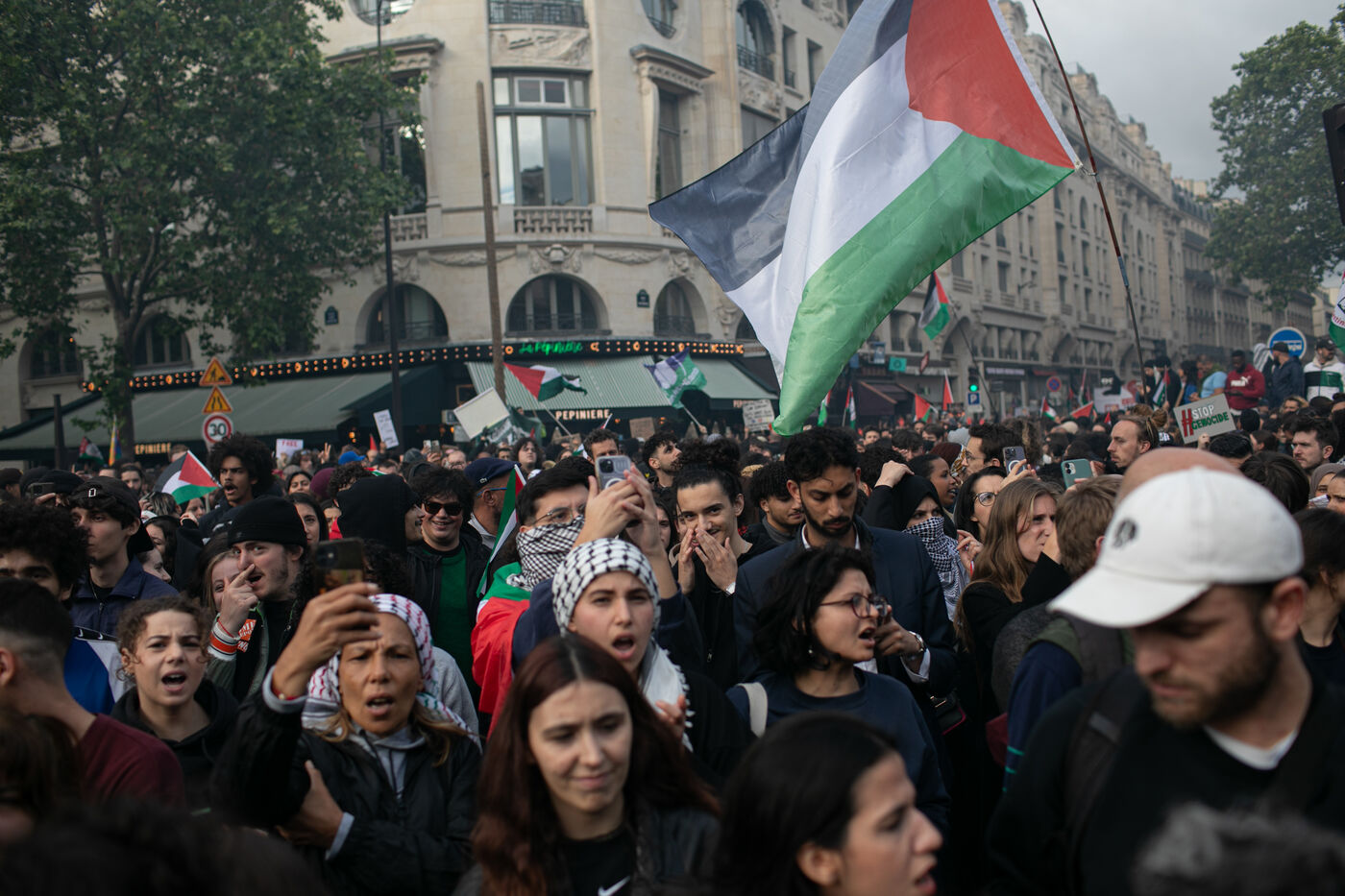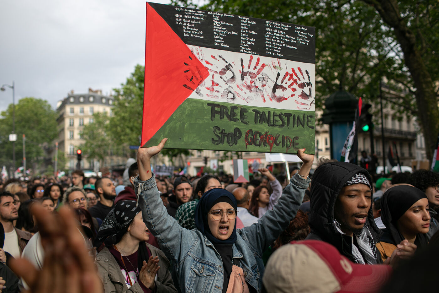 FRANCE, Paris May 27, 2024, demonstration in support of the Palestinian people after the bombing of the Rafah camp for displaced persons. Photography by Victoria Valdivia Trigo / Hans Lucas.