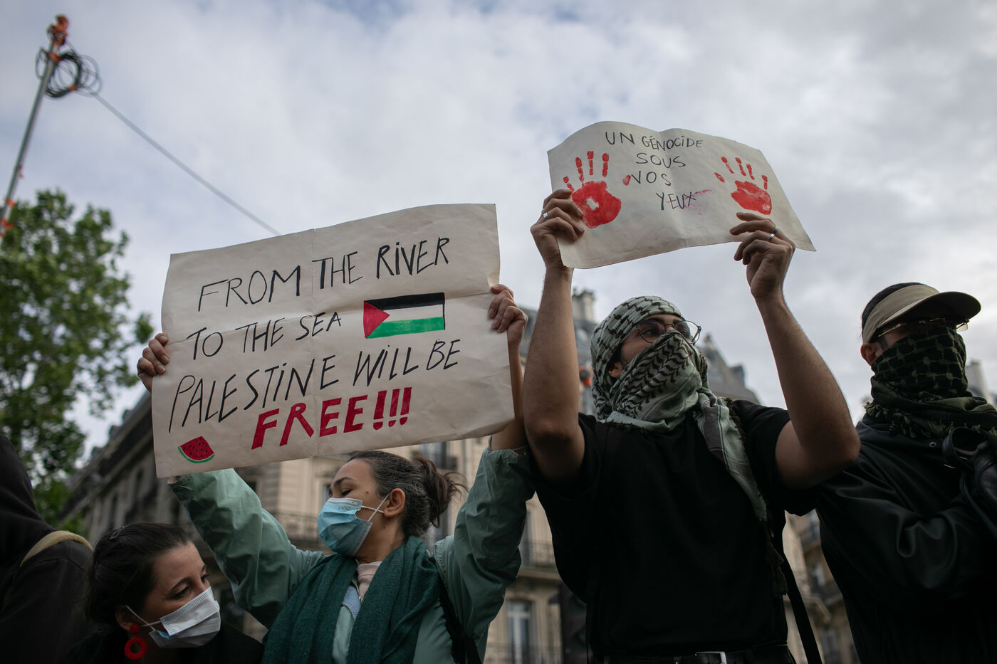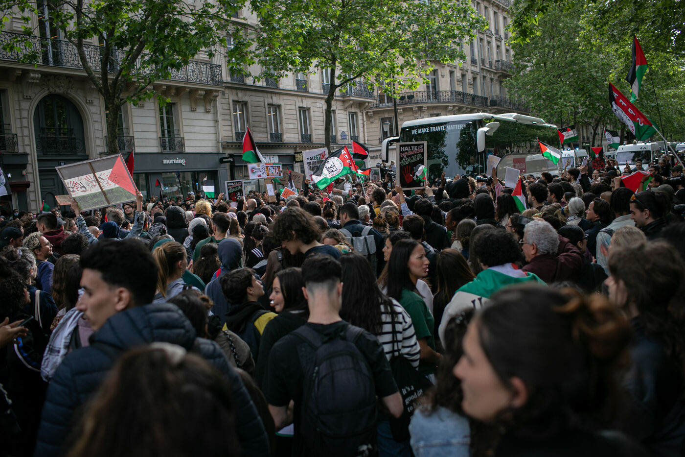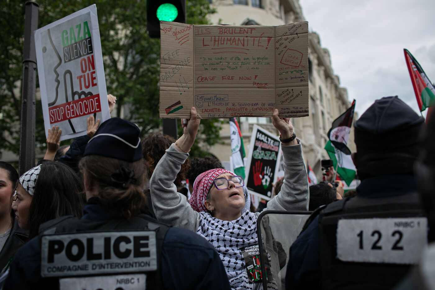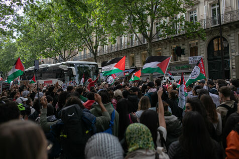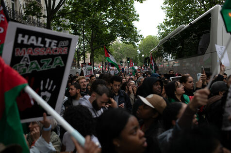 FRANCE, Paris 27 mai 2024, manifestation en soutien au peuple palestinien après le bombardement du camp des personnes déplacées à Rafah. Photographie par Victoria Valdivia Trigo / Hans Lucas.