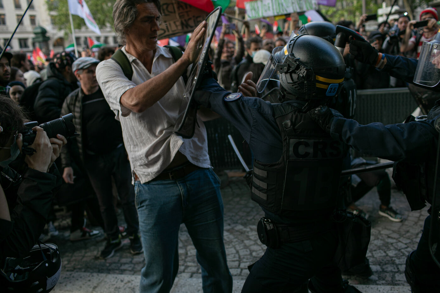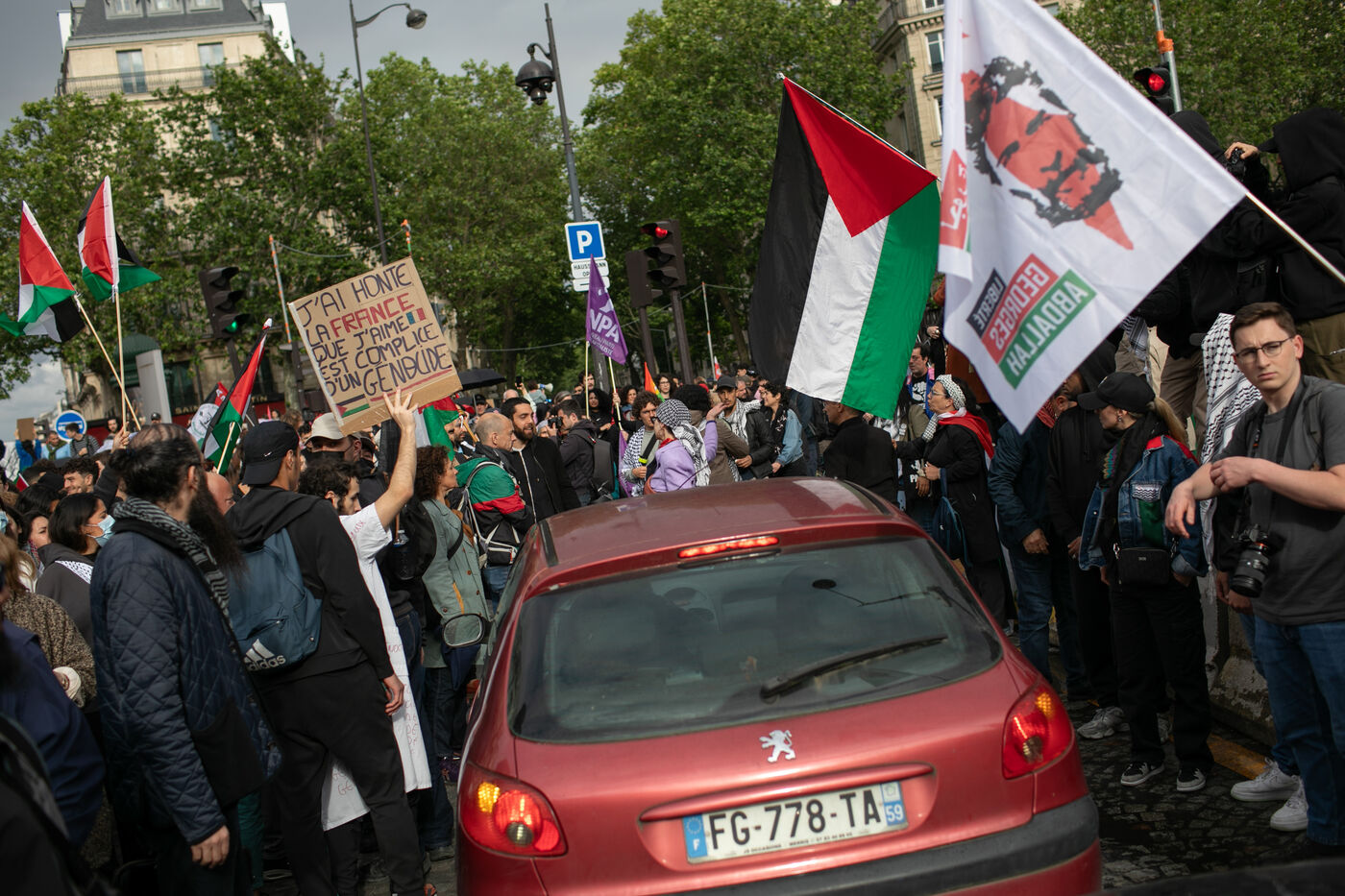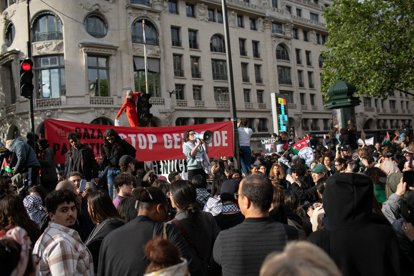 FRANCE, Paris 27 mai 2024, manifestation en soutien au peuple palestinien après le bombardement du camp des personnes déplacées à Rafah. Photographie par Victoria Valdivia Trigo / Hans Lucas.