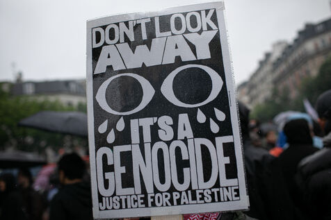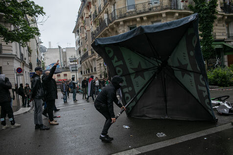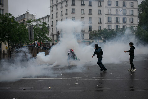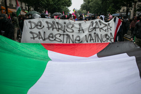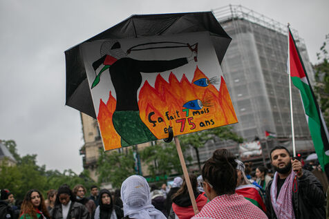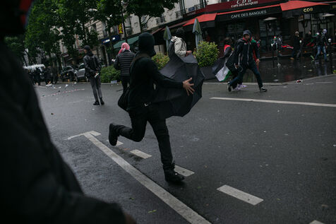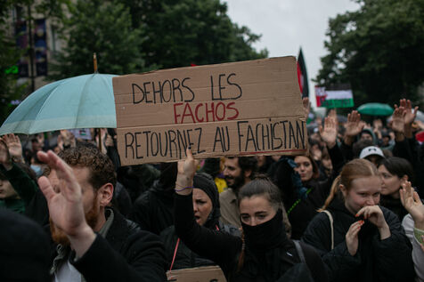 FRANCE, Paris 01 juin 2024, manifestation antifasciste en hommage à Clément et en soutien au peuple palestinien et kanaky. Clément Meric était un jeune militant antifasciste qui a été assassiné a Paris par des neo Nazis en 2013. Photographie par Victoria Valdivia Trigo / Hans Lucas.