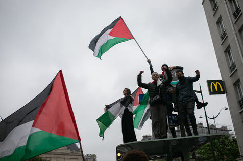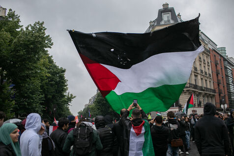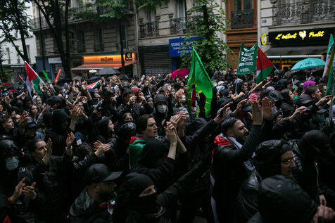 FRANCE, Paris June 01, 2024, antifascist demonstration in tribute to Clément and in support of the Palestinian and Kanaky people. Clément Meric was a young anti-fascist activist who was murdered in Paris by neo Nazis in 2013. Photography by Victoria Valdivia Trigo / Hans Lucas.