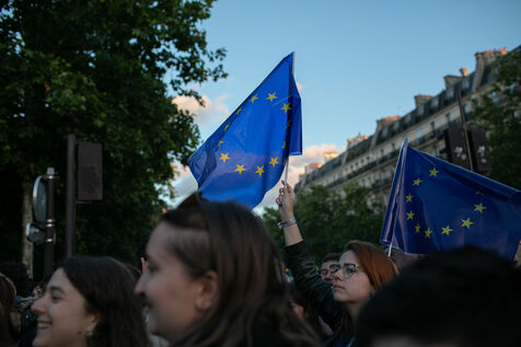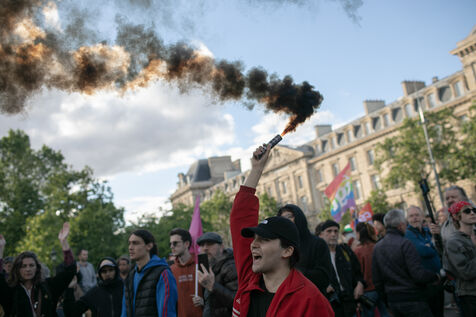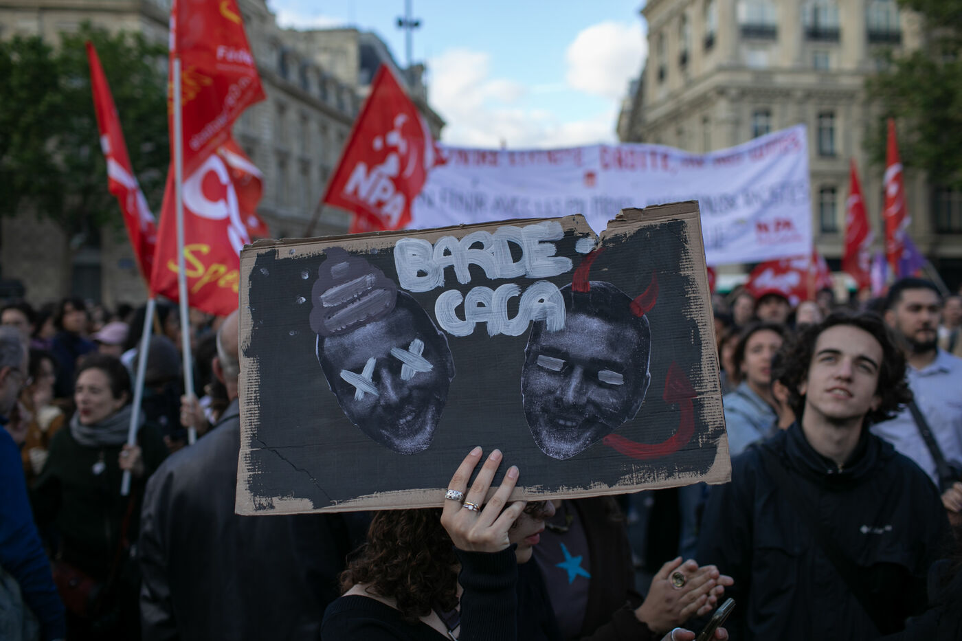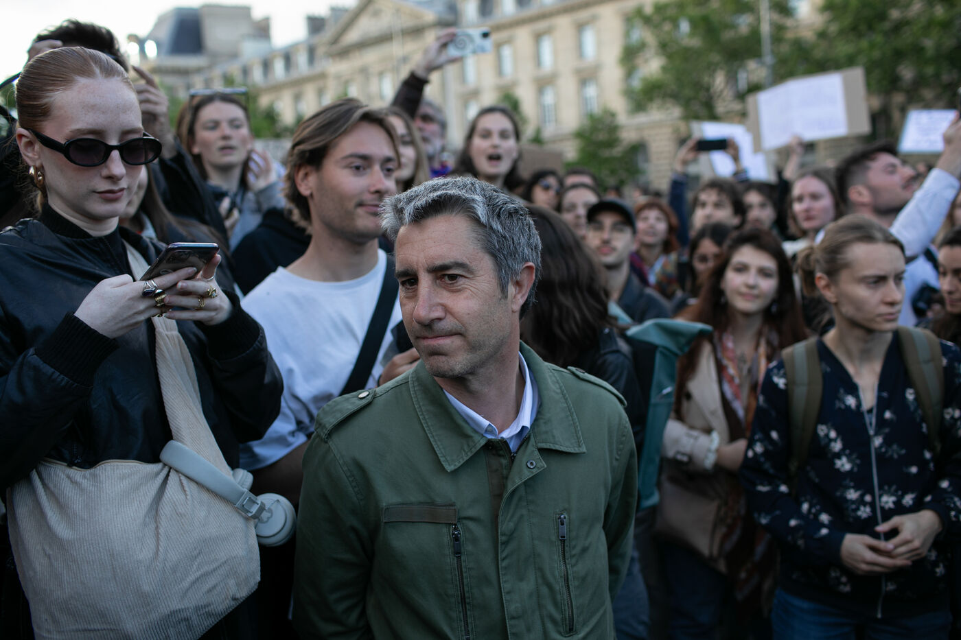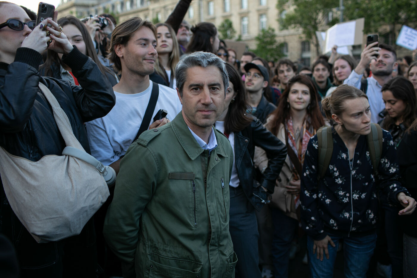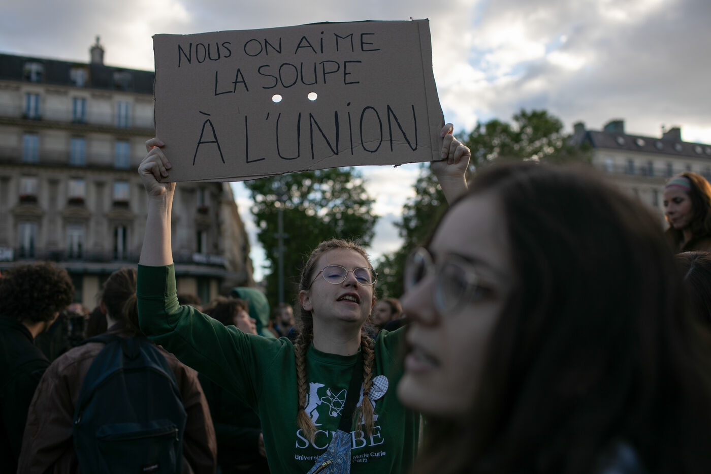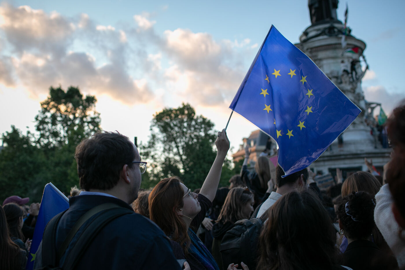 FRANCE, Paris, June 10, 2024, rally against the extreme right and for a popular front in Paris, France, June 10, 2024. Hundreds of demonstrators gathered after the result of the vote gave the extreme right wing party, Rassemblement National, victory over the other lists with 30 seats in the European Parliament.