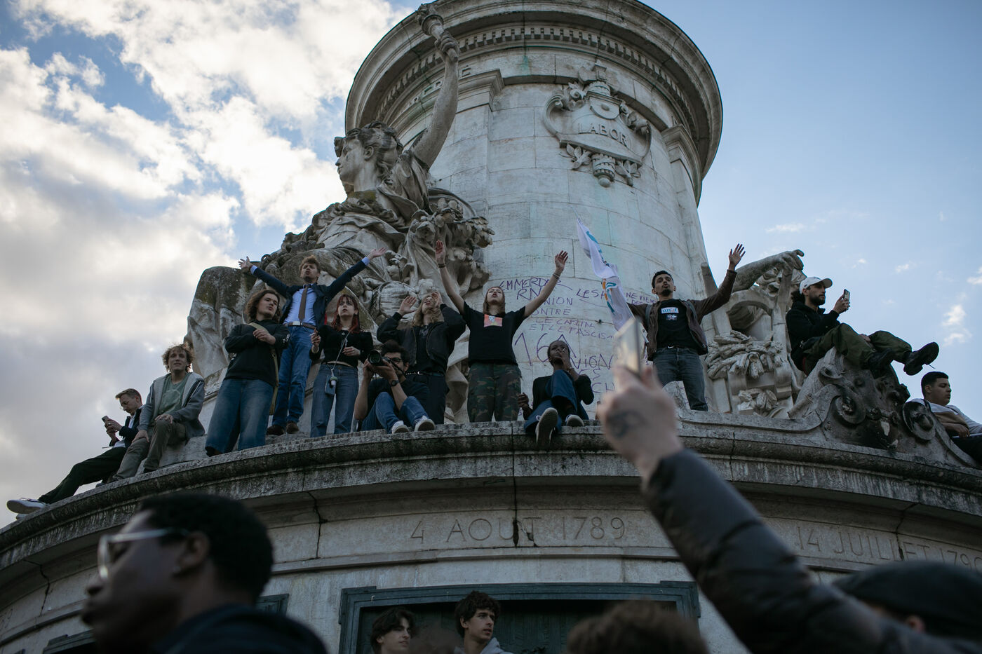 FRANCE, Paris, 10 juin 2024, rassemblement contre l'extrême droite et pour un front populaire à Paris, France, 10 juin 2024. Des centaines de manifestants se sont rassemblés après que le résultat du vote ait donné au parti d'extrême droite, le Rassemblement national, la victoire sur les autres listes avec 30 sièges au Parlement européen.