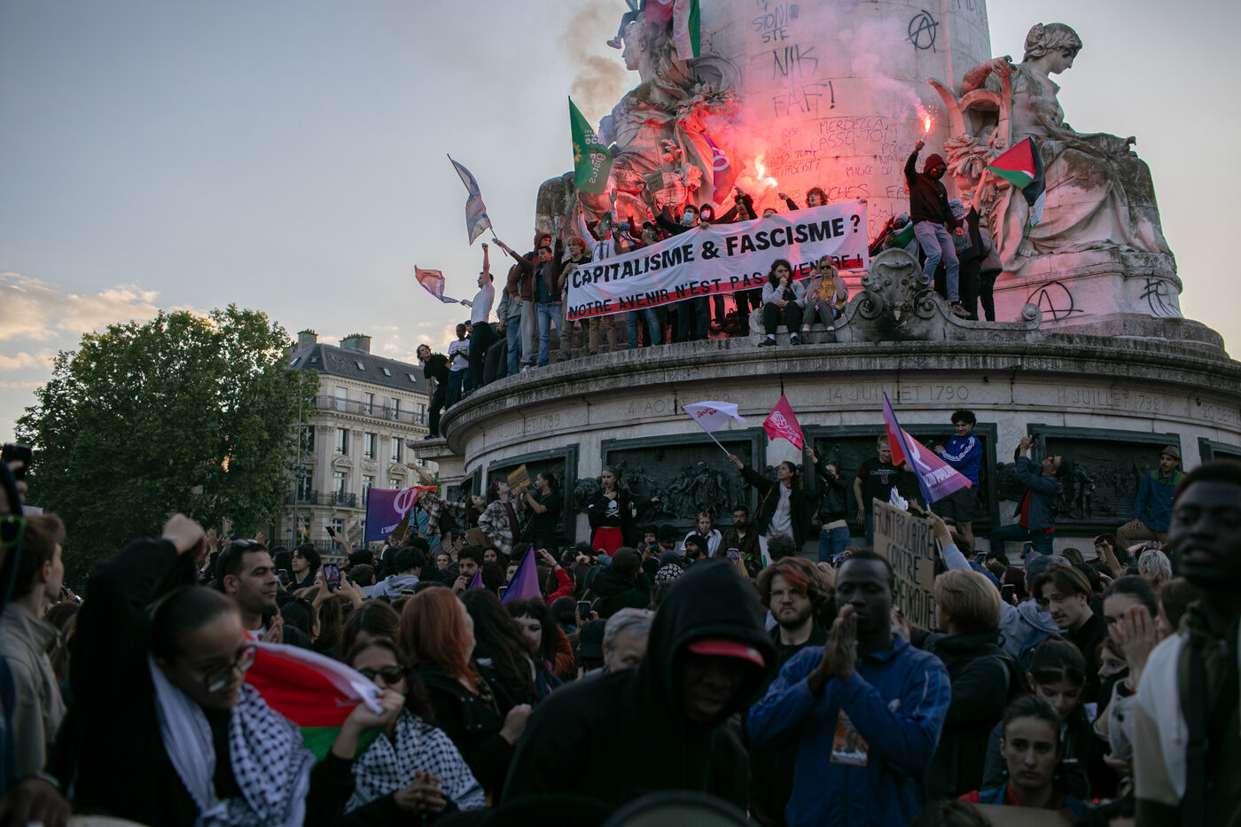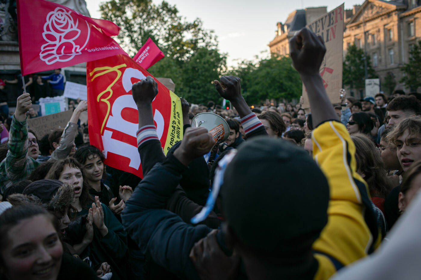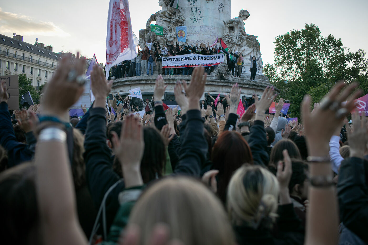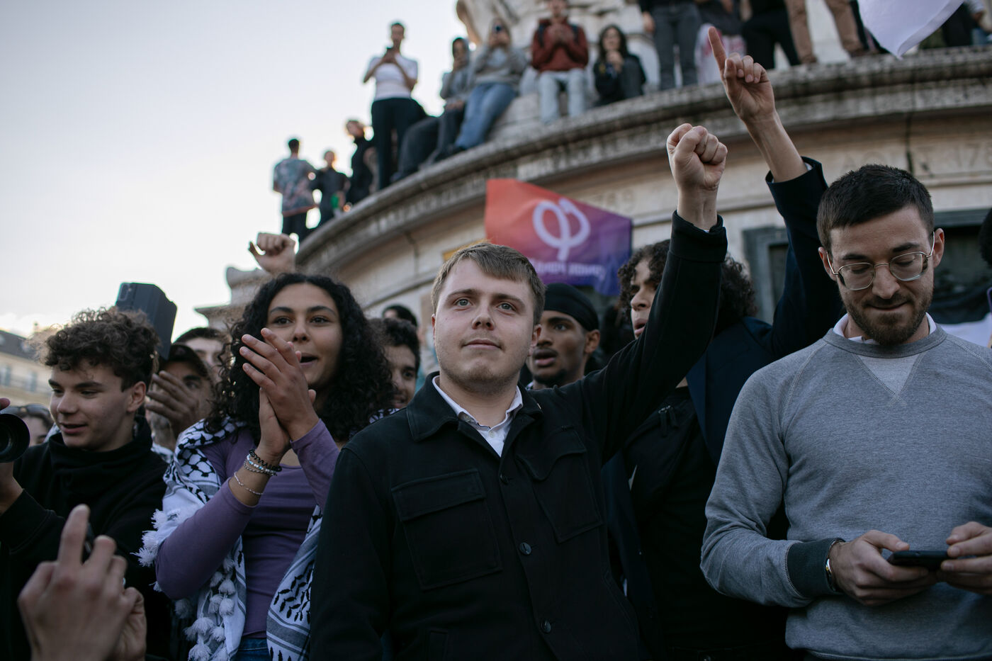 FRANCE, Paris, June 11, 2024, rally against the extreme right. Third day of demonstrations on the Place de la Républiques, called by youth organizations against the extreme right and in support of the union of the left in a new Popular Front.