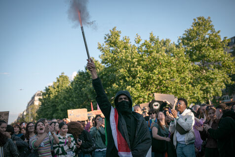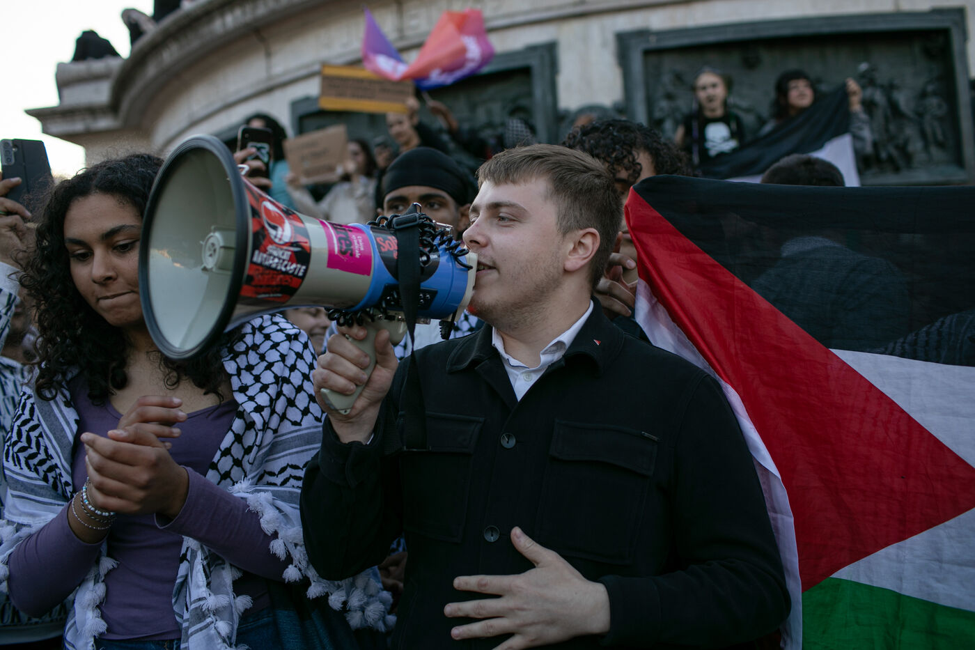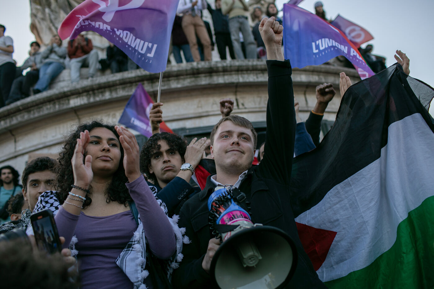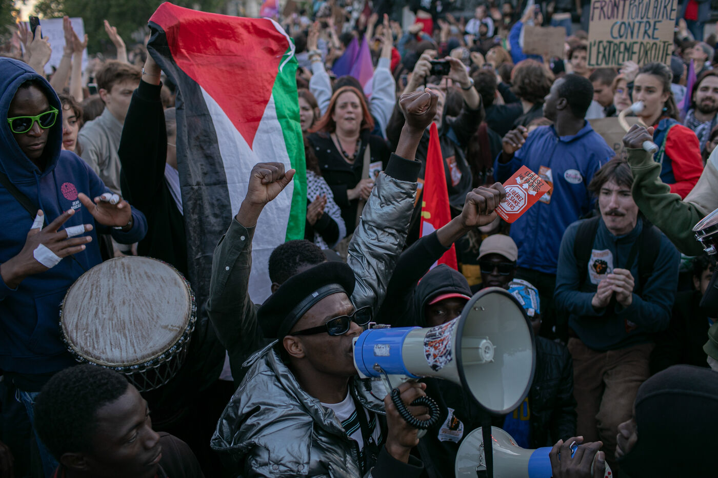 FRANCE, Paris, June 11, 2024, rally against the extreme right. Third day of demonstrations on the Place de la Républiques, called by youth organizations against the extreme right and in support of the union of the left in a new Popular Front.