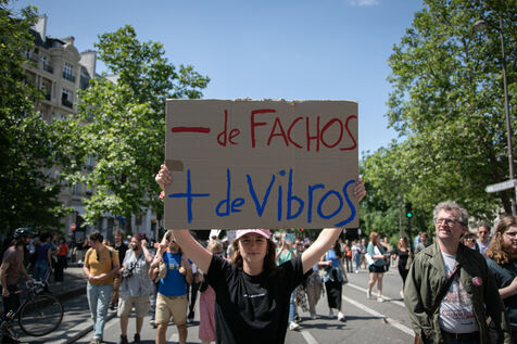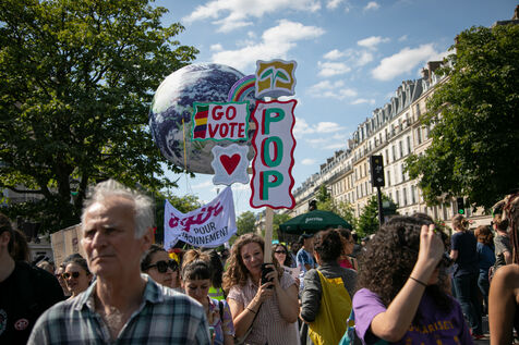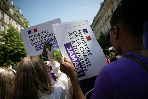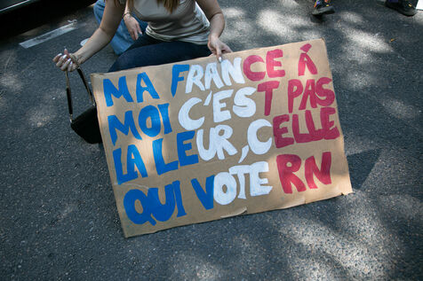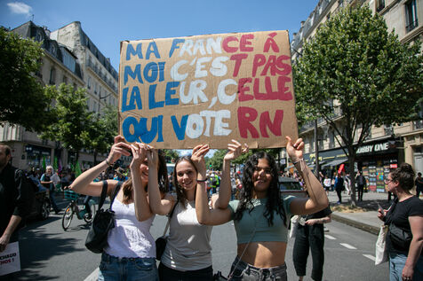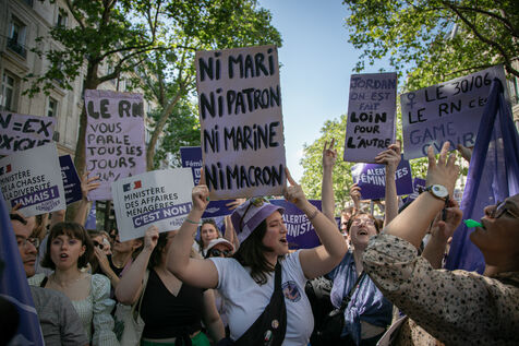 FRANCE, Paris June 23, 2024, feminist demonstration against the extreme right. Several associations, NGOs and trade unions marched through the streets of the capital to denounce the "facade feminism" used by the extreme right. Photography by Victoria Valdivia Trigo / Hans Lucas.