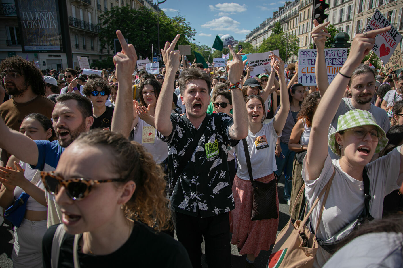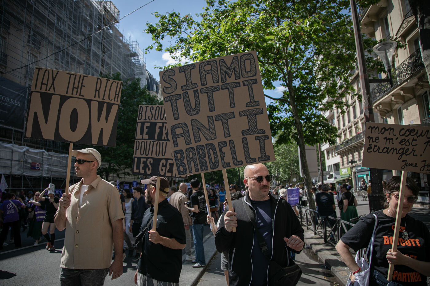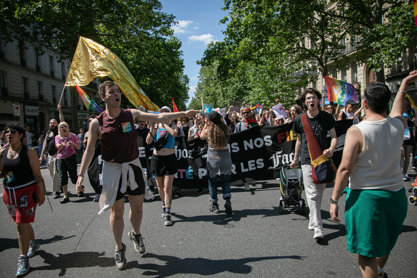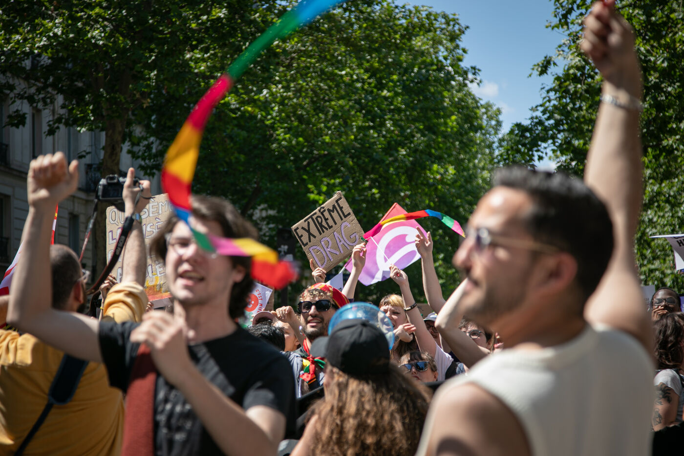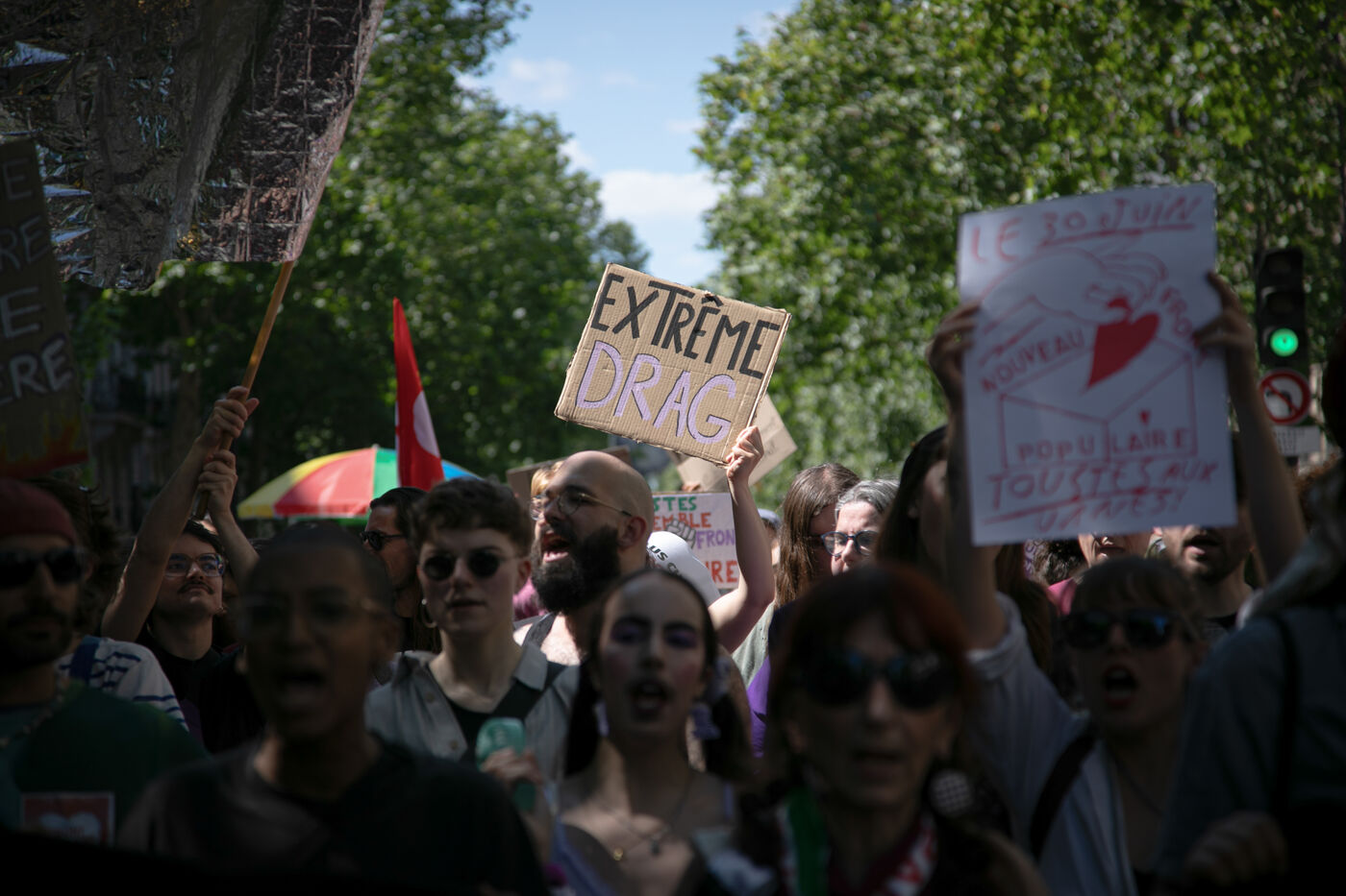 FRANCE, Paris 23 juin 2024, manifestation féministe contre l'extrême droite. Plusieurs associations, d'ONG et de syndicats ont défilé dans les rues de la capitale pour dénoncer le "féminisme de façade" utilisé par l'extrême droite. Photographie par Victoria Valdivia Trigo / Hans Lucas.