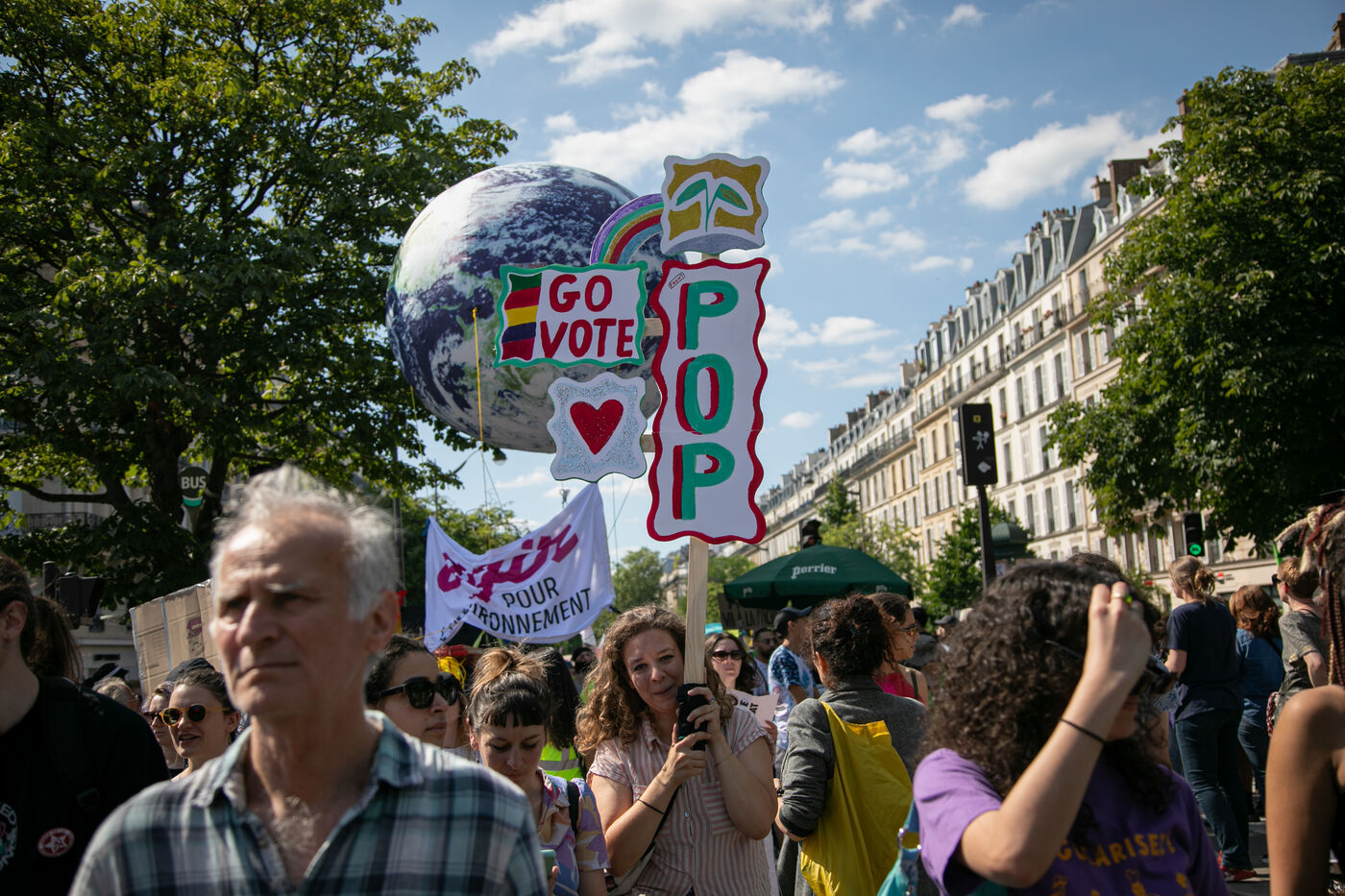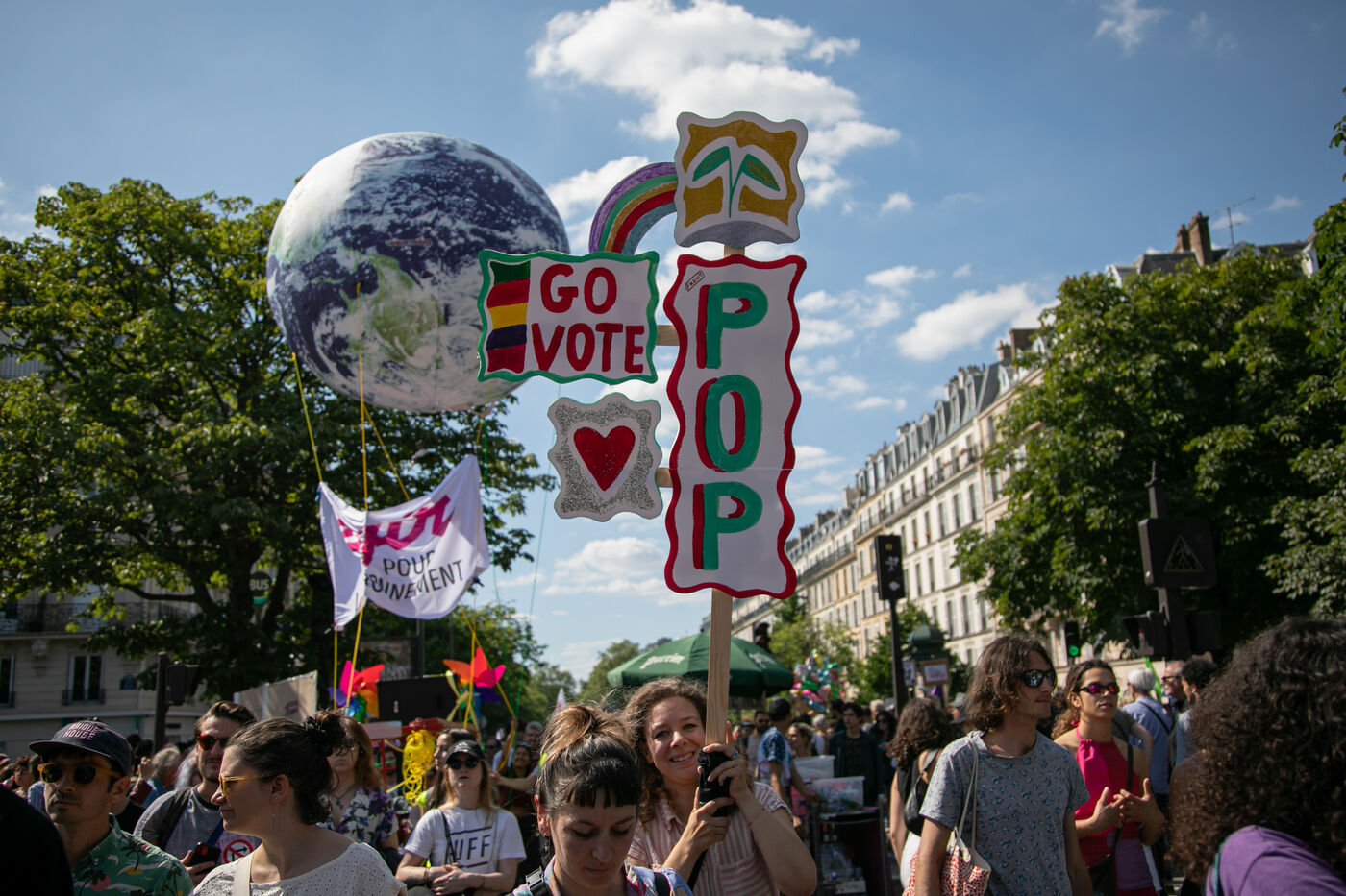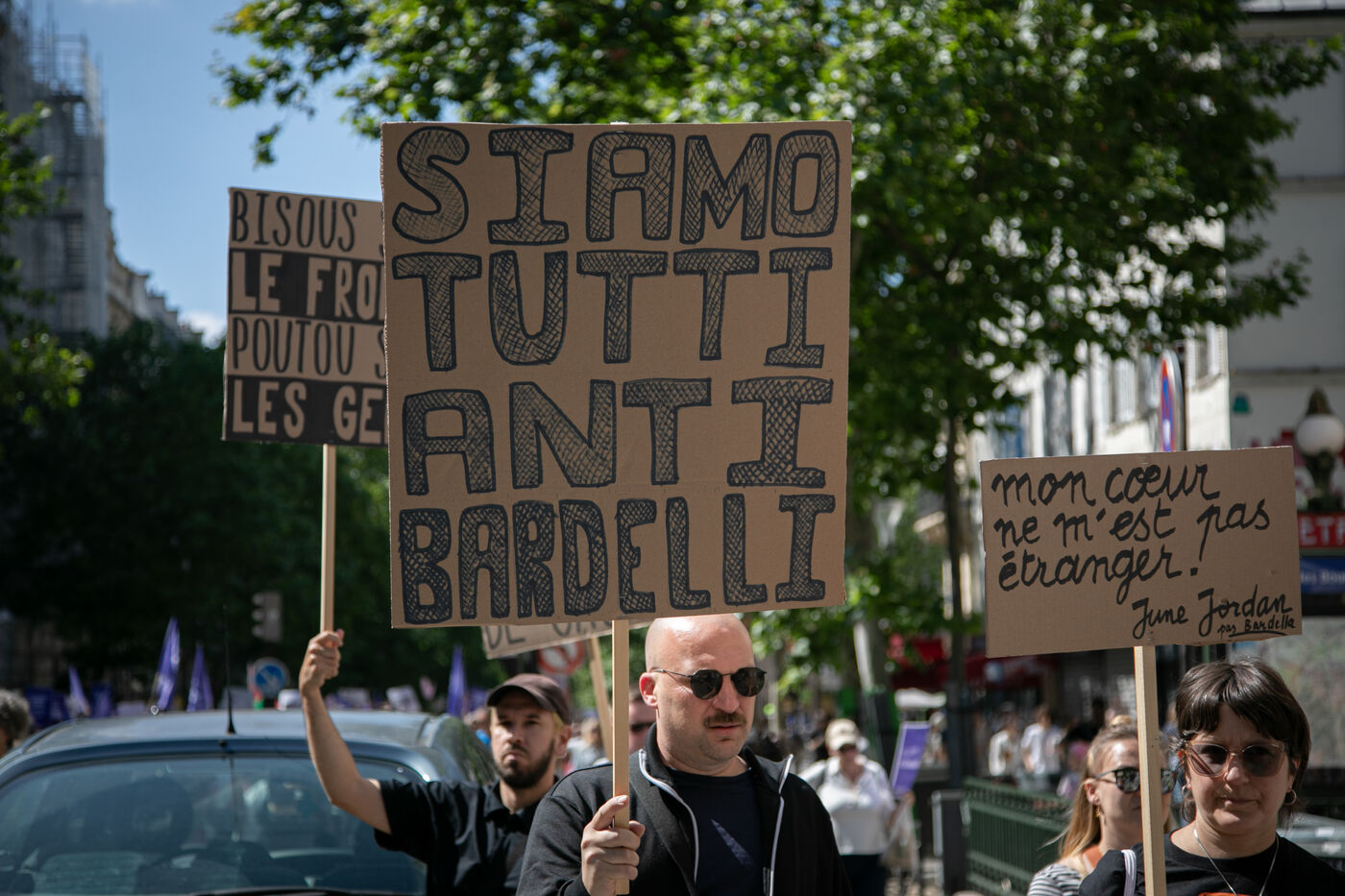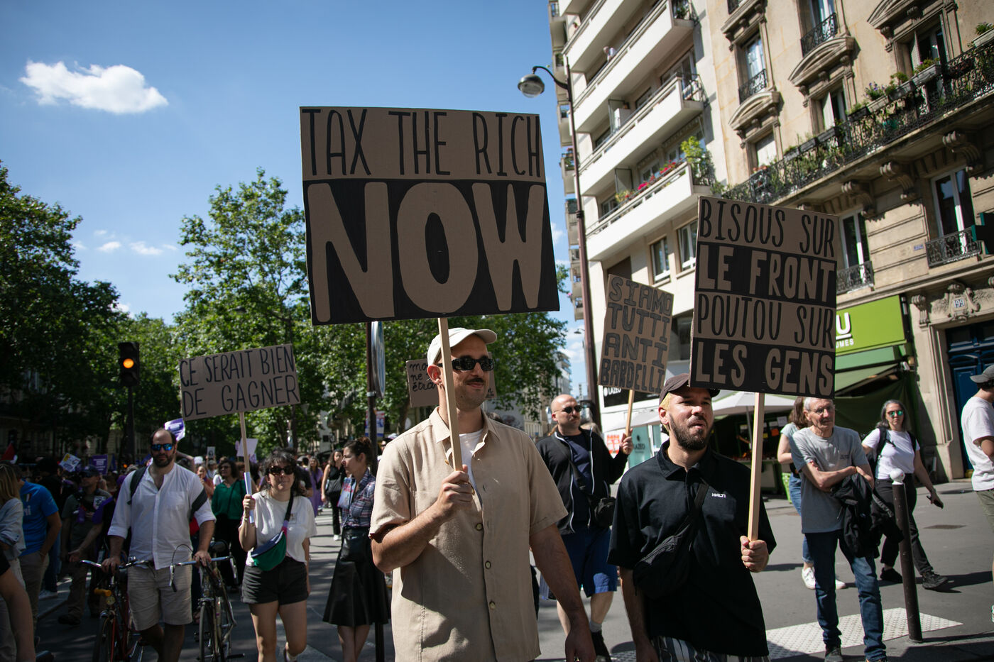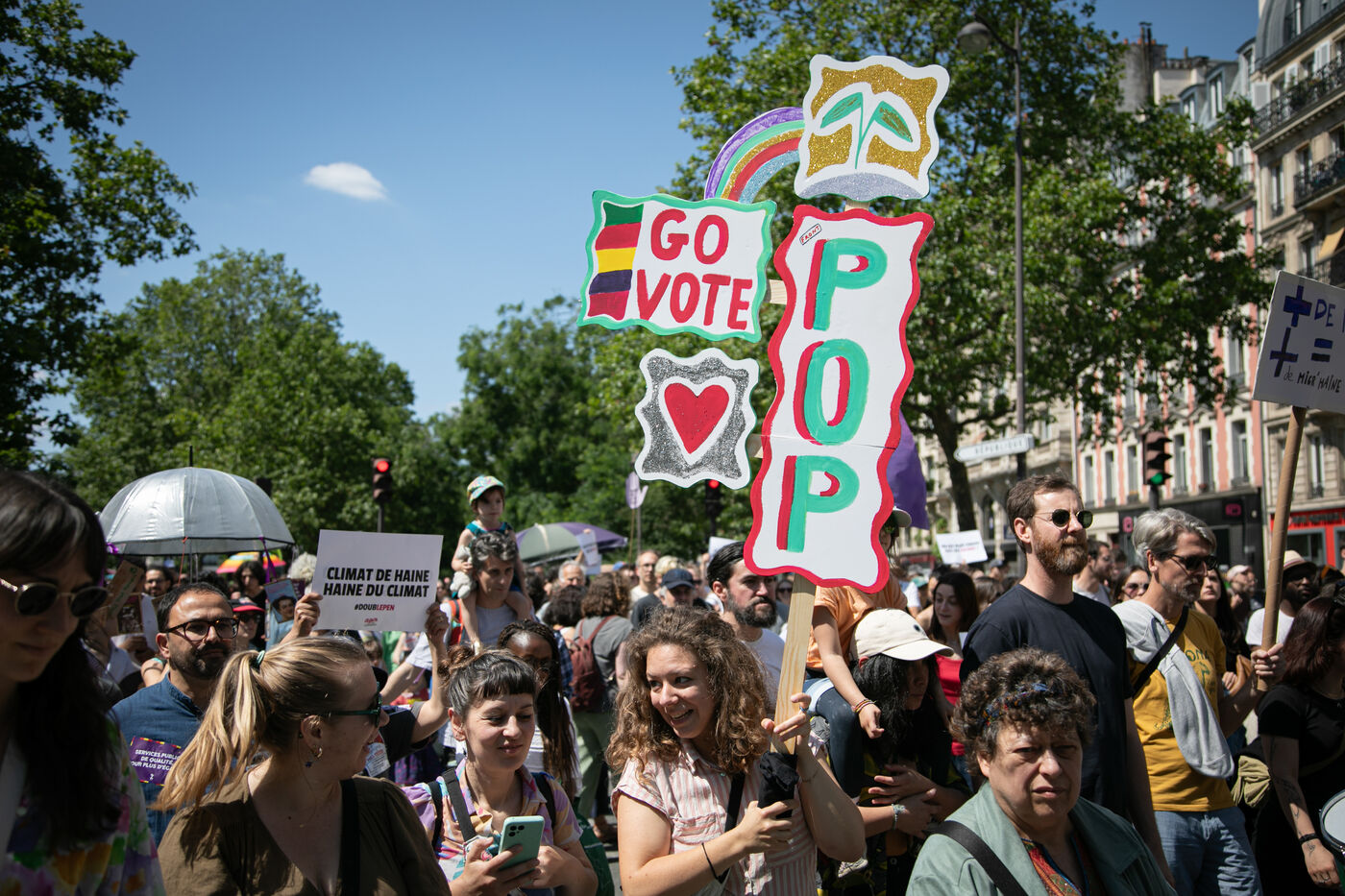 FRANCE, Paris 23 juin 2024, manifestation féministe contre l'extrême droite. Plusieurs associations, d'ONG et de syndicats ont défilé dans les rues de la capitale pour dénoncer le "féminisme de façade" utilisé par l'extrême droite. Photographie par Victoria Valdivia Trigo / Hans Lucas.