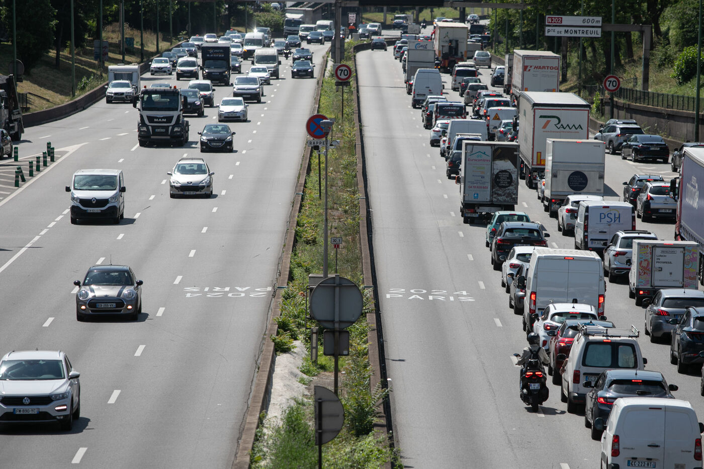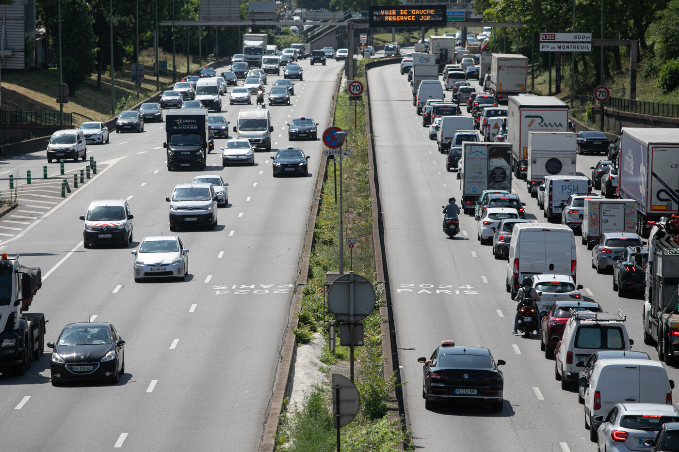 FRANCE, Paris, July 17, 2024, Illustration of the exclusive left lane of the ring road for the Olympic Games. Photography by Victoria Valdivia Trigo / Hans Lucas.