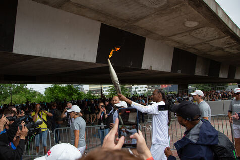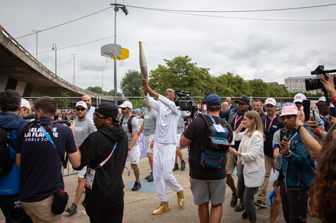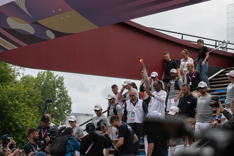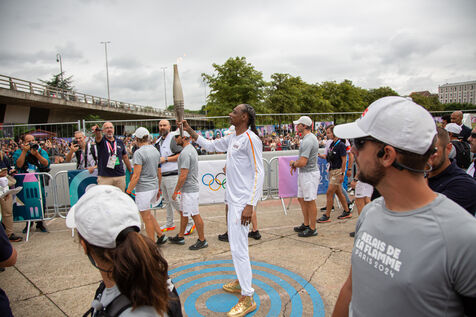 FRANCE, Paris July 26, 2024, last stop for the Olympic flame before the opening ceremony in Seine-Saint-Denis, France on July 26, 2024. Photography by Victoria Valdivia Trigo / Hans Lucas.