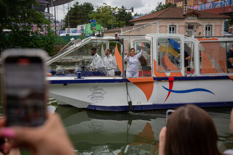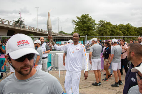 FRANCE, Paris 26 juillet 2024, dernière étape de la flamme olympique avant la cérémonie d?ouverture à Seine-Saint-Denis, France le 26 juillet 2024. Photographie par Victoria Valdivia Trigo / Hans Lucas.