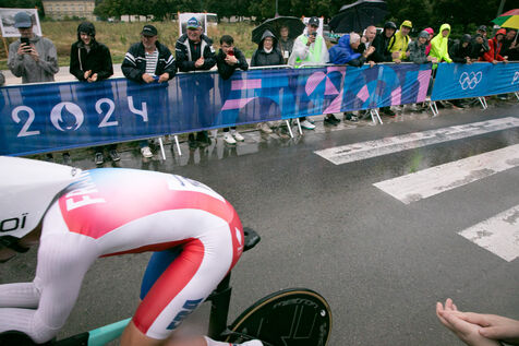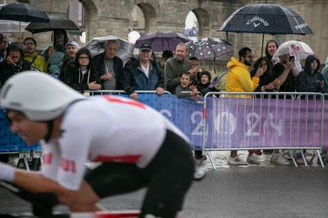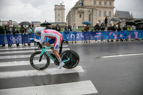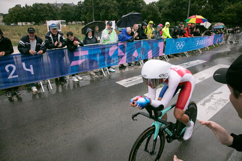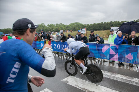 FRANCE, Paris, July 27, 2024, men's individual time trial road cycling event at the Paris 2024 Olympic Games in Vincennes. Photography by Victoria Valdivia Trigo / Hans Lucas.