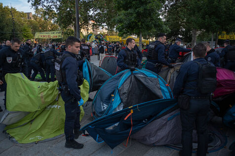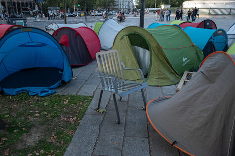 TENTS SET UP AT BASTILLE TO DEMAND ACCOMMODATION FOR THE HOMELESS