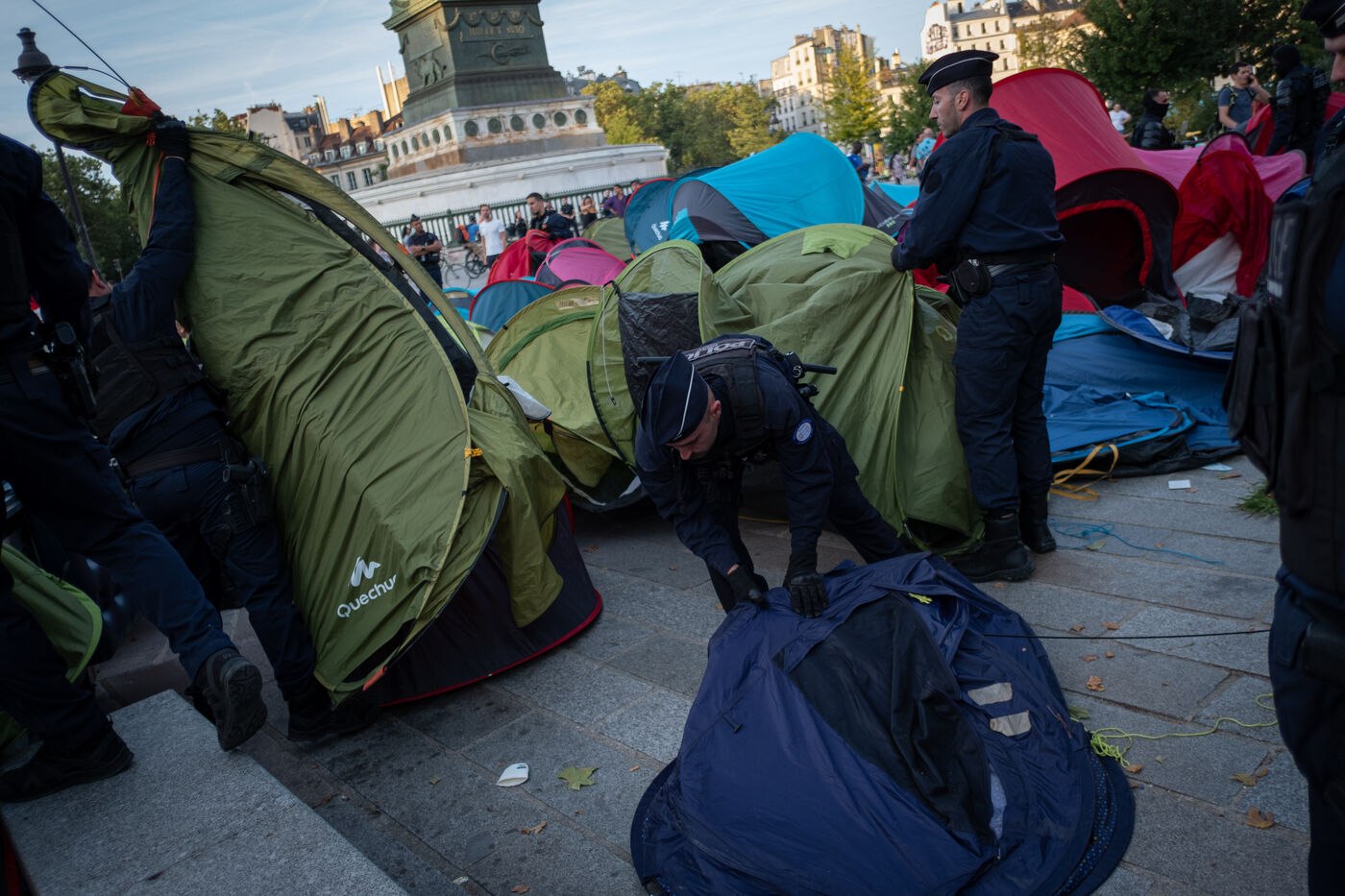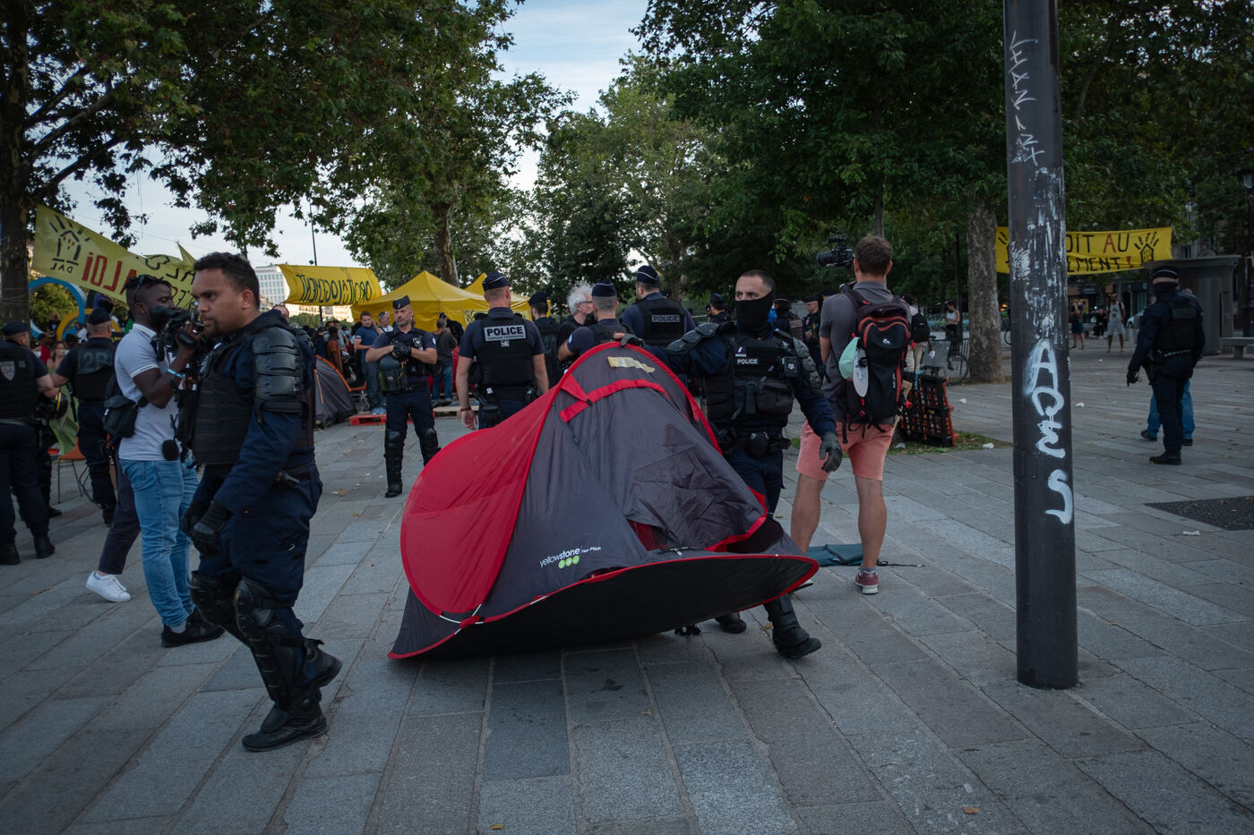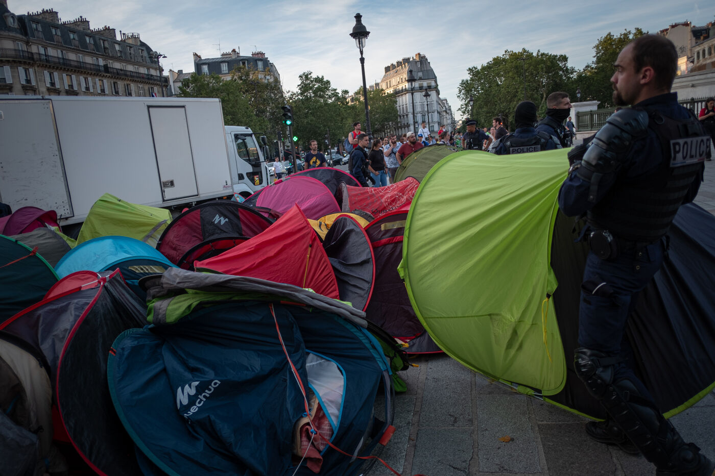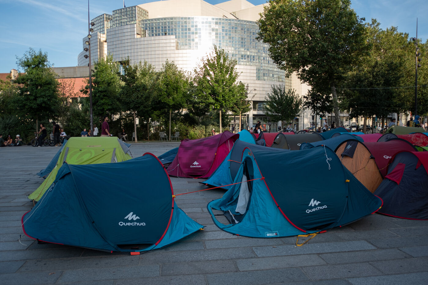 INSTALLATION DES TENTES À BASTILLE POUR DEMANDER L?HÉBERGEMENT DES PERSONNES SANS-ABRI