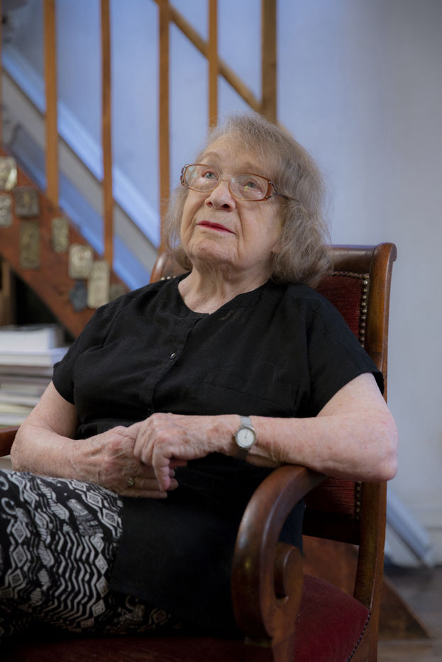 Portrait of photographer Sabine Weiss at her home in Paris.