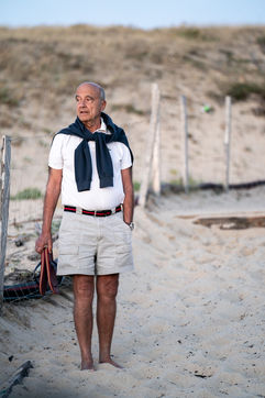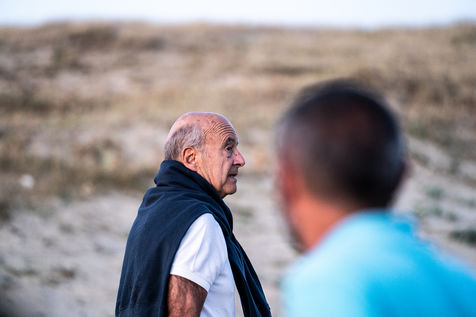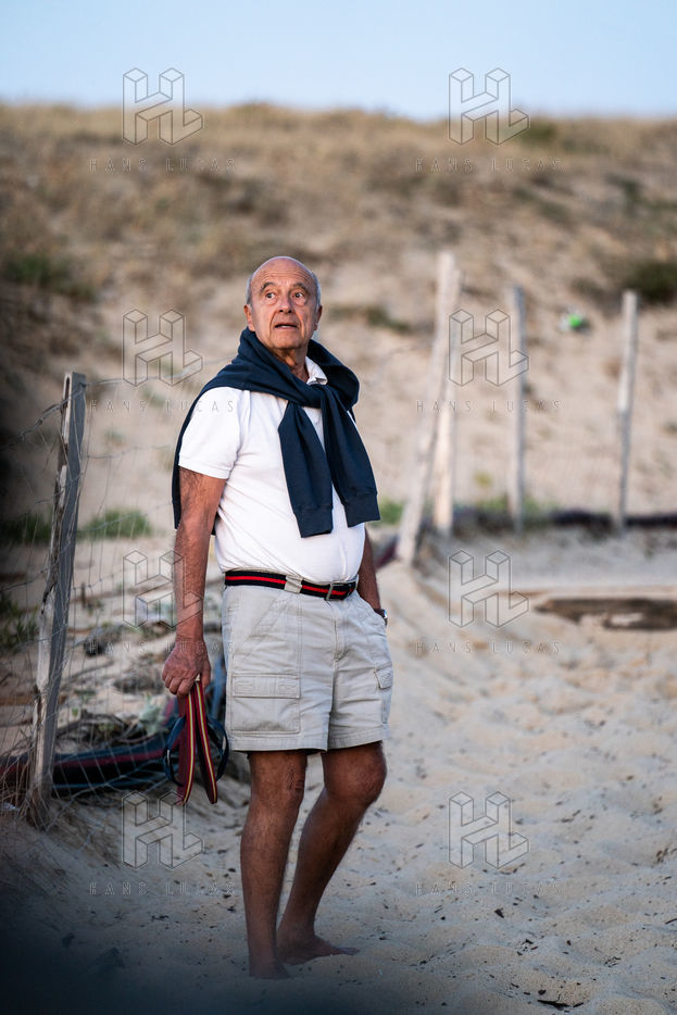 Alain Juppe, ancien Premier ministre français, regardant le coucher de soleil avec sa famille sur la plage des Estagnots à Soorts-Hossegor dans les Landes, 18 août 2020.
