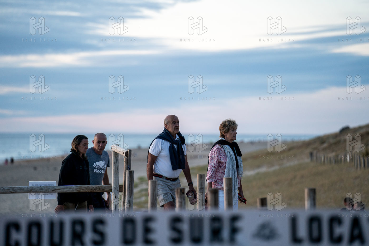 Alain Juppe, former French Prime Minister, watching the sunset with his family on the Estagnots beach at Soorts-Hossegor in the Landes, August 18, 2020.