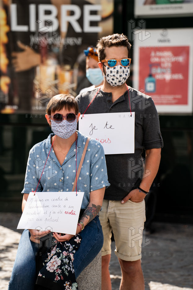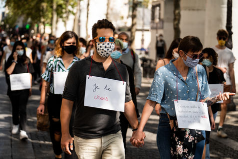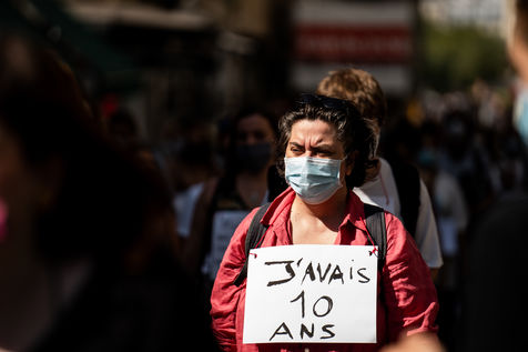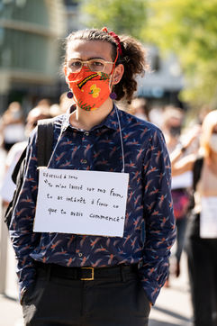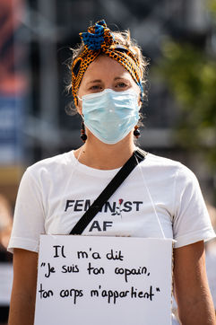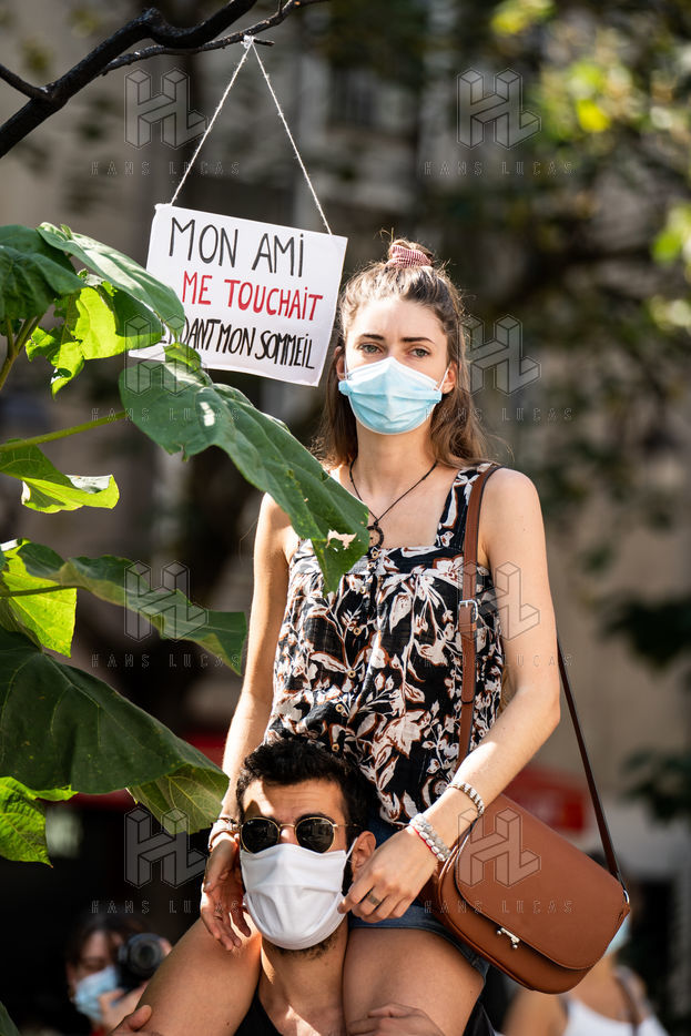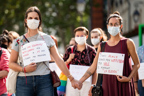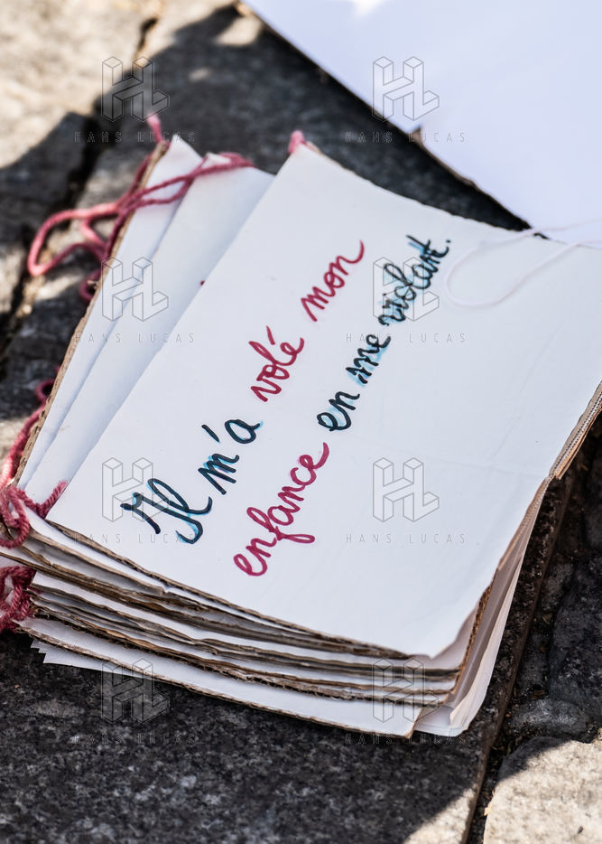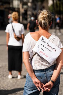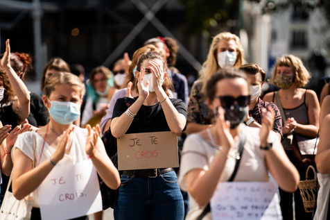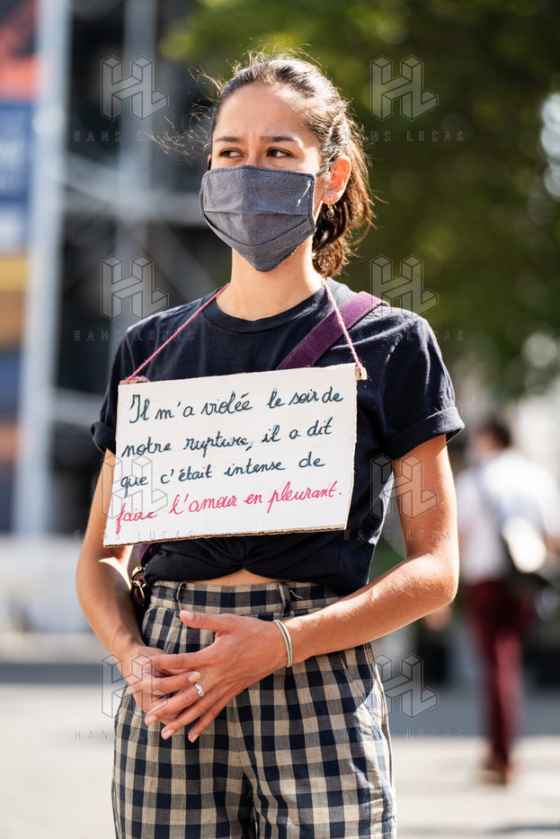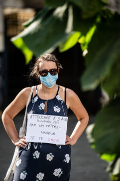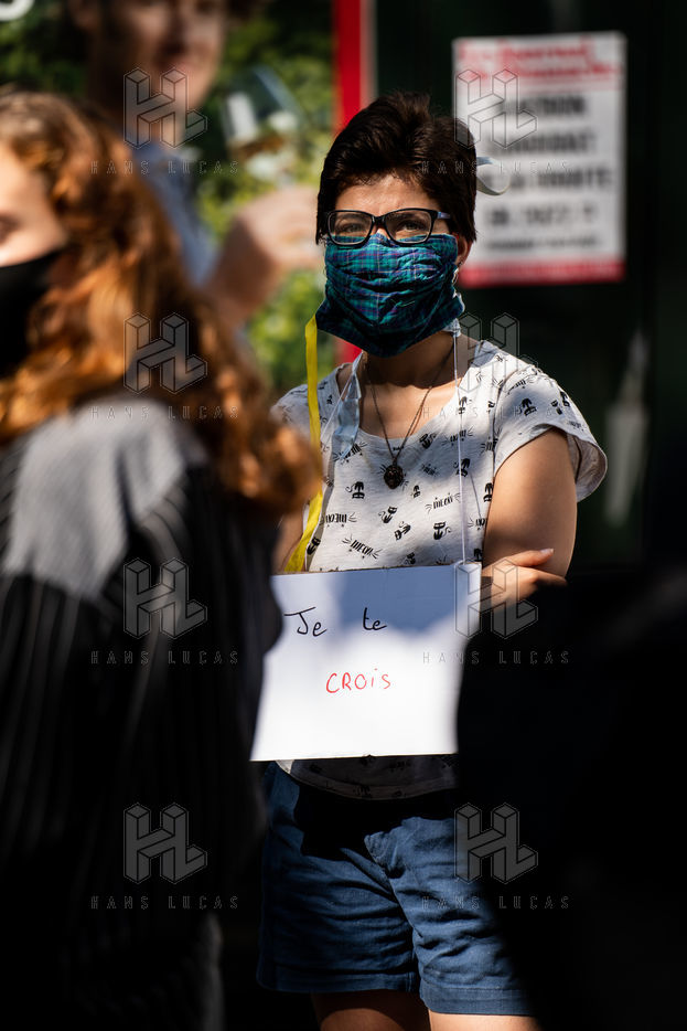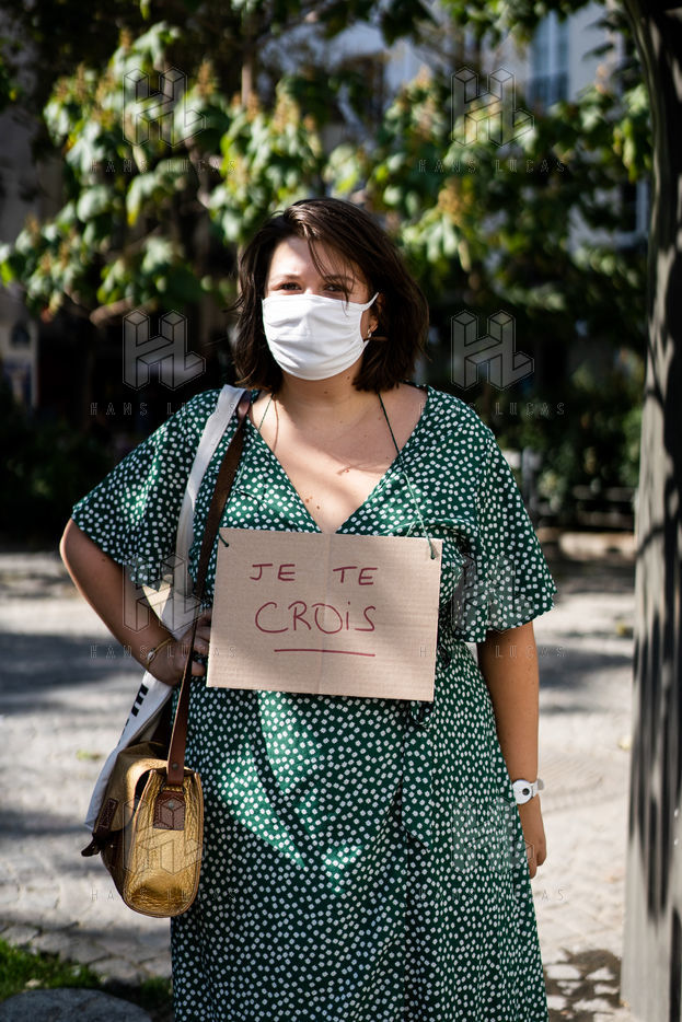 Manifestation "I believe in you" organized by Collages Feminicides Paris and Les Resilientes to allow victims to testify and free their speech, constantly questioned, Paris, September 13, 2020.