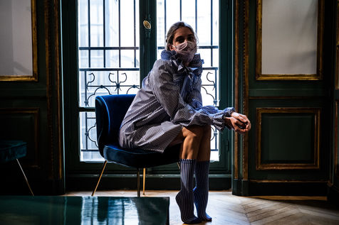 Présentation de la première collection de la nouvelle créatrice Prune Goldschmidt pendant la Semaine de la mode à Paris.