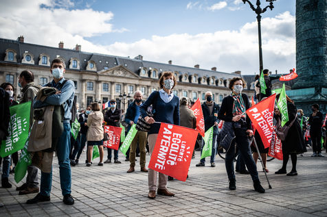 Les opposants au projet de loi bioéthique ont manifesté sur la place Vendôme devant le Ministère de la Justice.