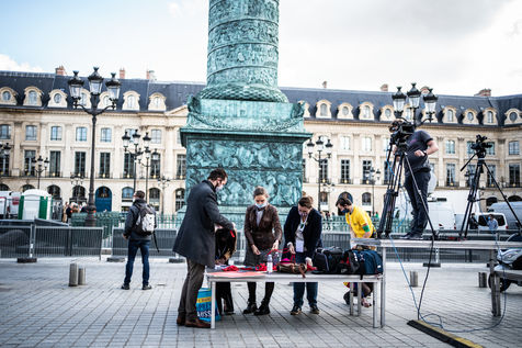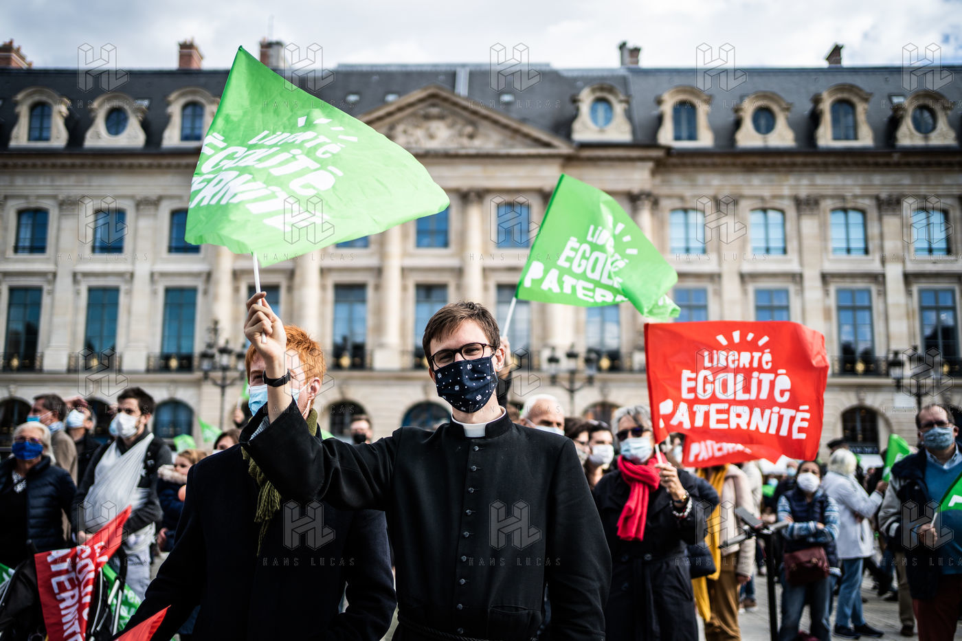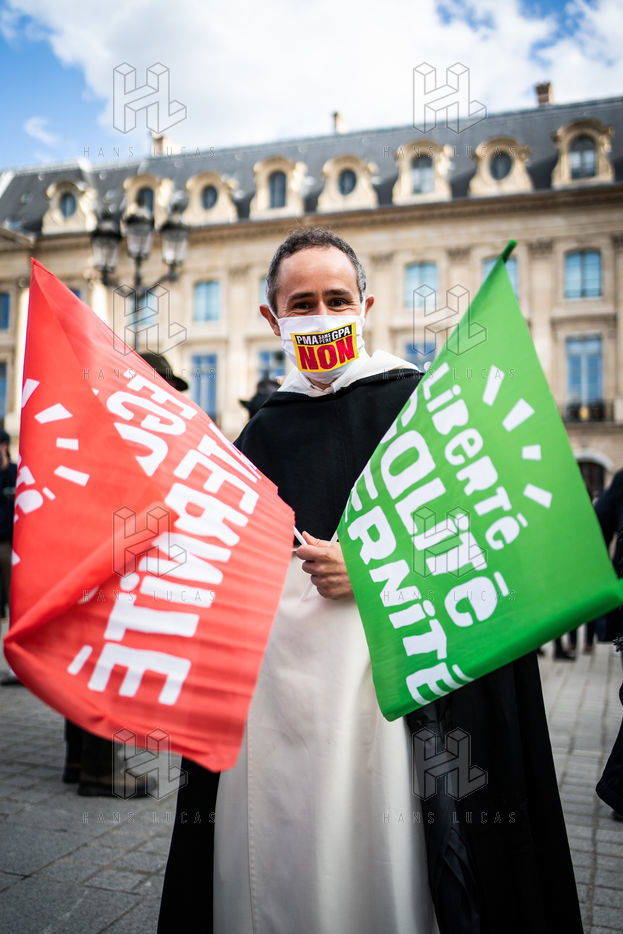 Opponents of the bioethics bill demonstrated on the Place Vendôme in front of the Ministry of Justice.
