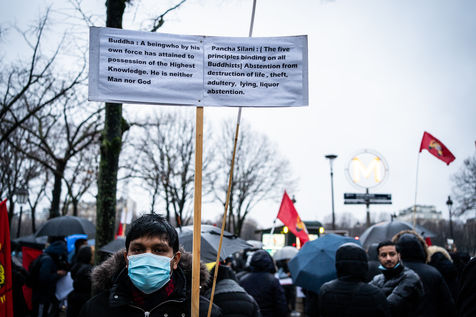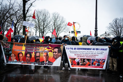 Tamil demonstration to demand support against the government of Sri Lanka, accused of crimes against humanity, at the Invalides subway station in front of the National Assembly.