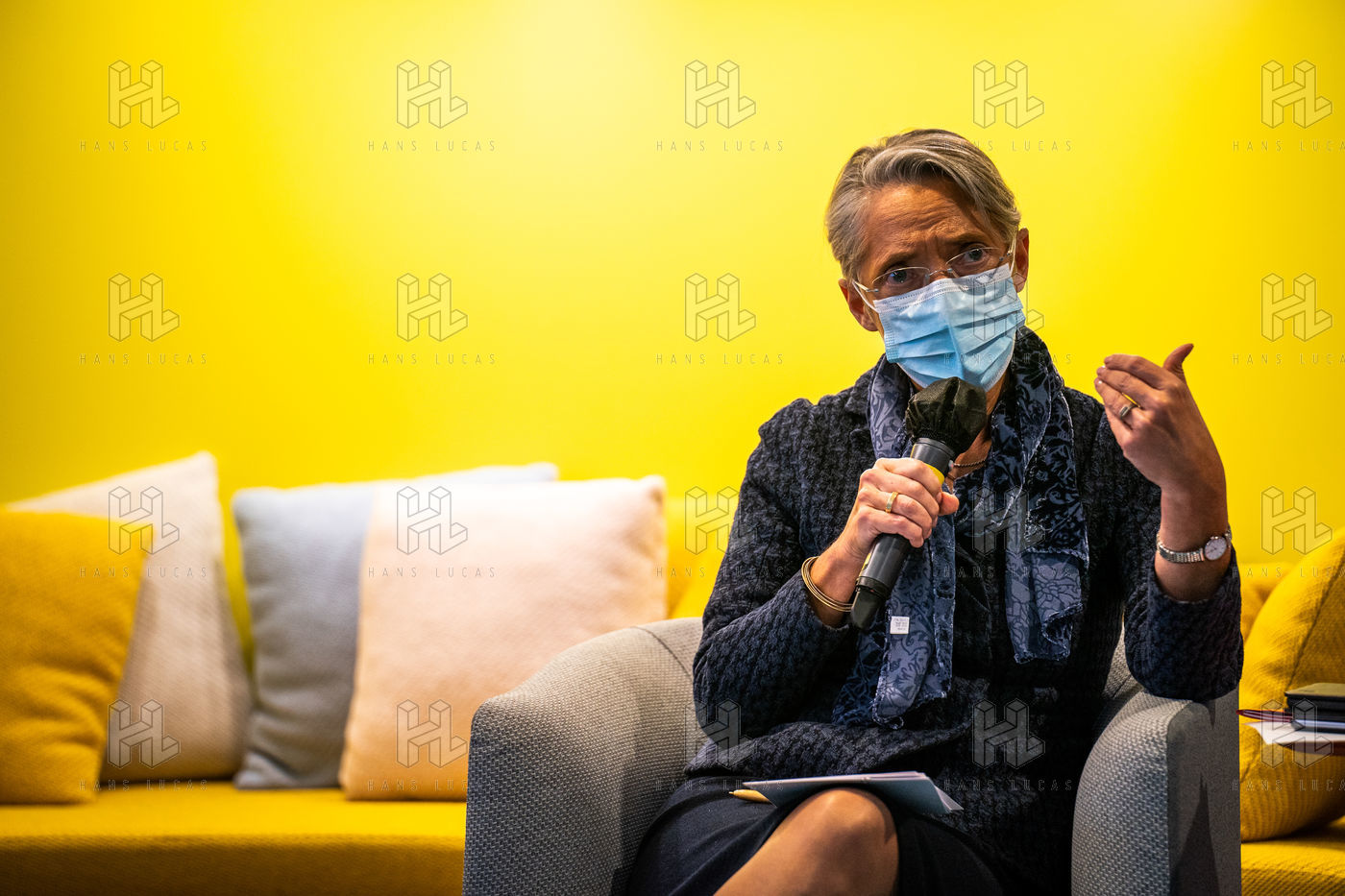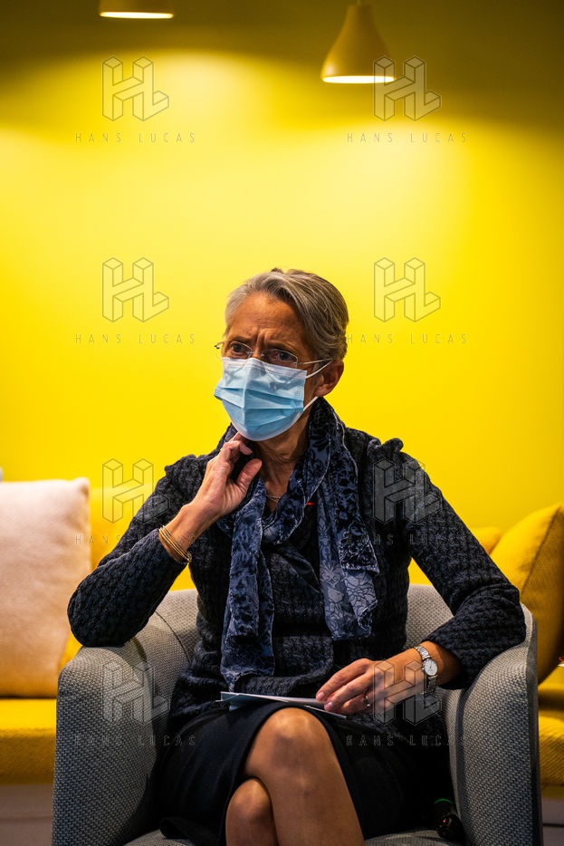 Elisabeth Borne ministre du Travail, de l'Emploi et de l'Insertion, Brigitte Bourguignon ministre déléguée auprès du ministre des Solidarités et de la Santé, chargée de l'Autonomie et Thibaut Guilluy haut-commissaire à l'emploi et à l'engagement des entreprises se rendent chez Korian, groupe européen du soin et de l'accompagnement des personnes âgées et fragiles, pour un entretien sur le thème de l'apprentissage, dispositif clé du plan « 1 jeune, 1 solution » à Paris (8ème arrondissement) Mardi 26 janvier 2021.