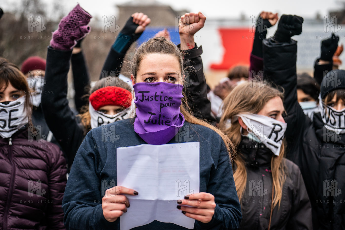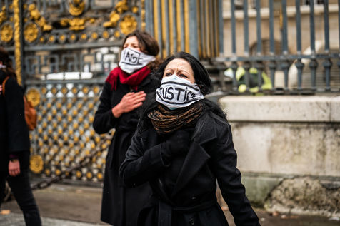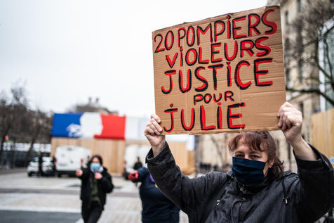 The Amazons met in front of the Palais de Justice in Paris where the magistrates of the Court of Cassation sit, who are due to meet to examine Julie's case, to demand the cassation of the decision by which the magistrates of the Court of Appeal of Versailles decided to amnesty 17 rape firefighters, and to worry the remaining 3 only for the crime of sexual assault on a minor.