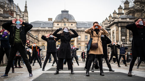 Les Amazones se sont réunies devante le Palais de Justice de Paris où siègent les magistrats de la Cour de cassation qui doivent se réunir pour examiner l'affaire de Julie, pour exiger la cassation de l'arrêt par lequel les magistrats de la cour d'appel de Versailles ont décidé d'amnistier 17 pompiers de viol, et de n'inquiéter les 3 restants que pour le délit d'atteinte sexuelle sur mineure.