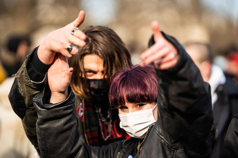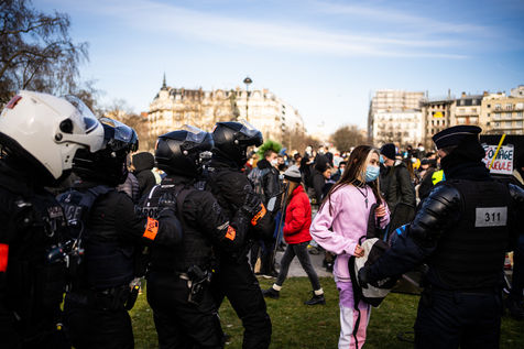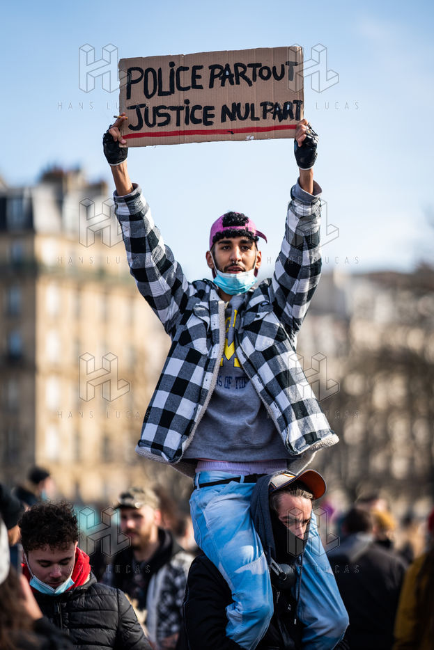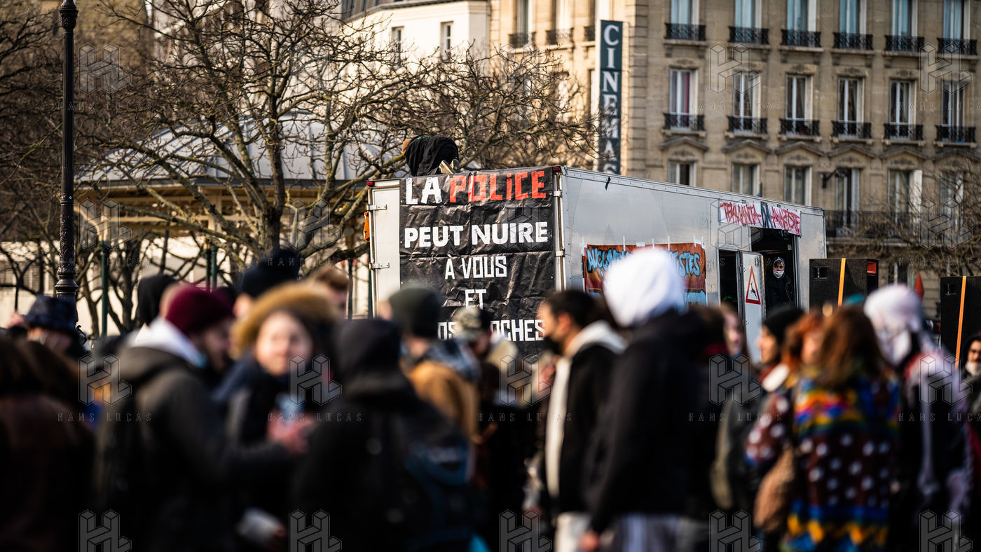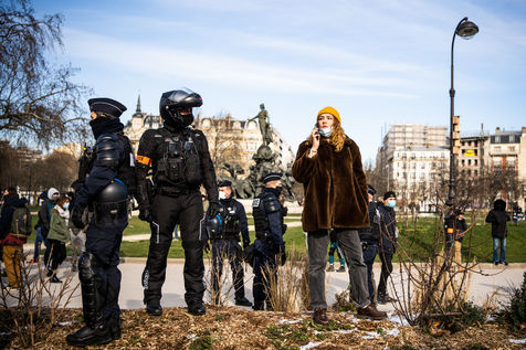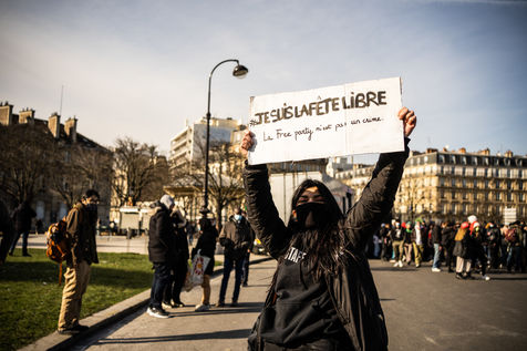 Demonstration in support of the Maskarade at Nation Square, Paris February 13, 2021.