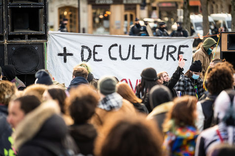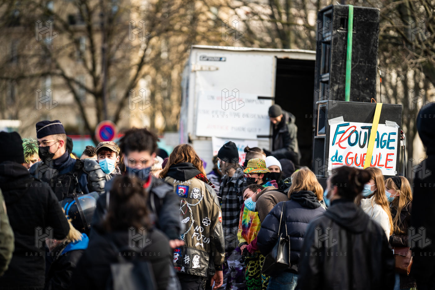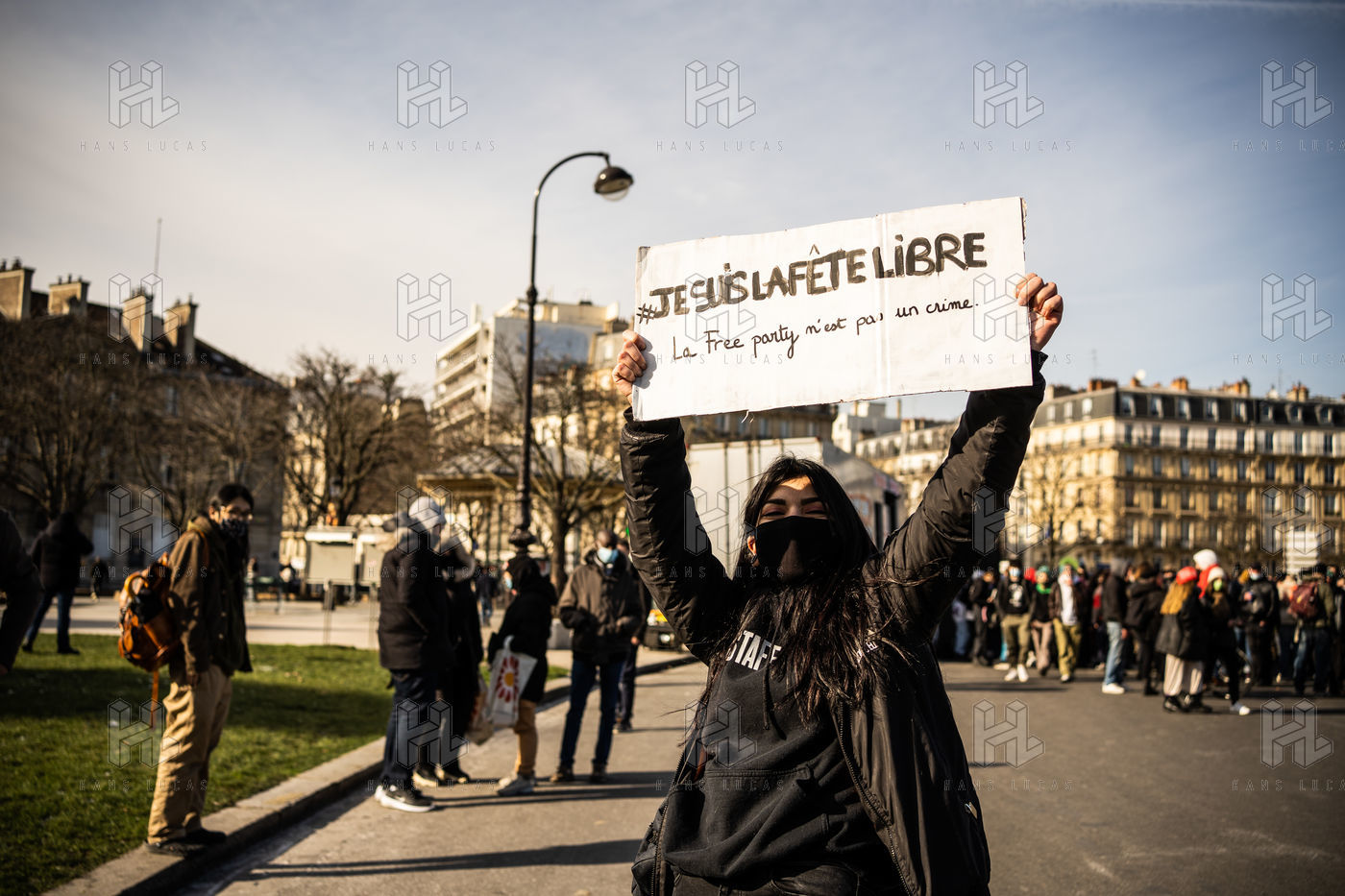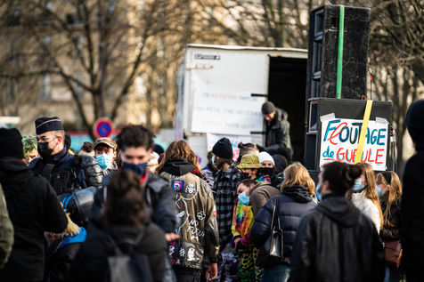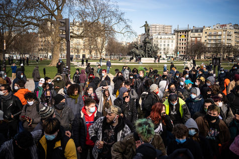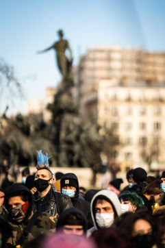 Manifestation en soutien à la Maskarade à Place de la Nation, Paris 13 février 2021.