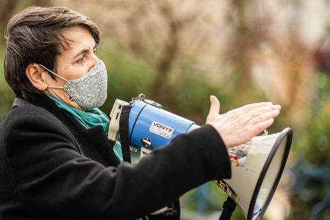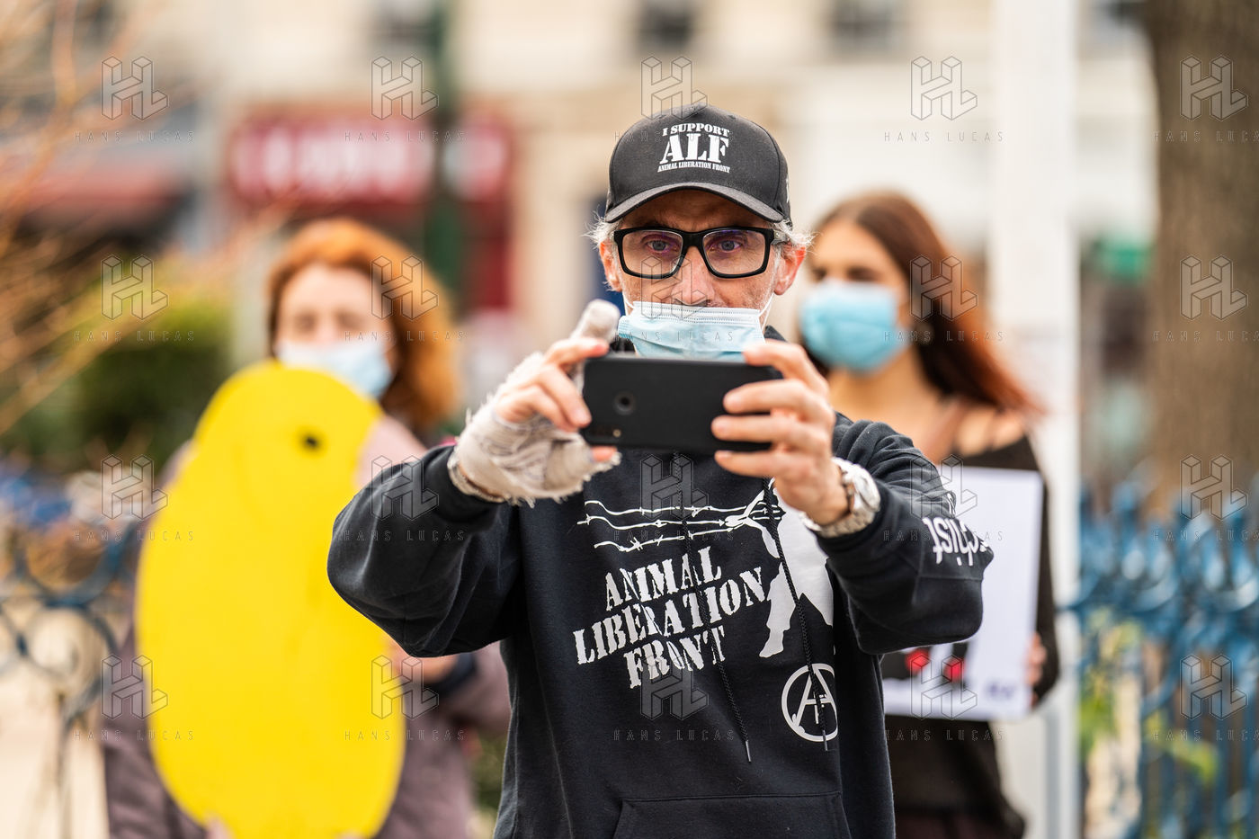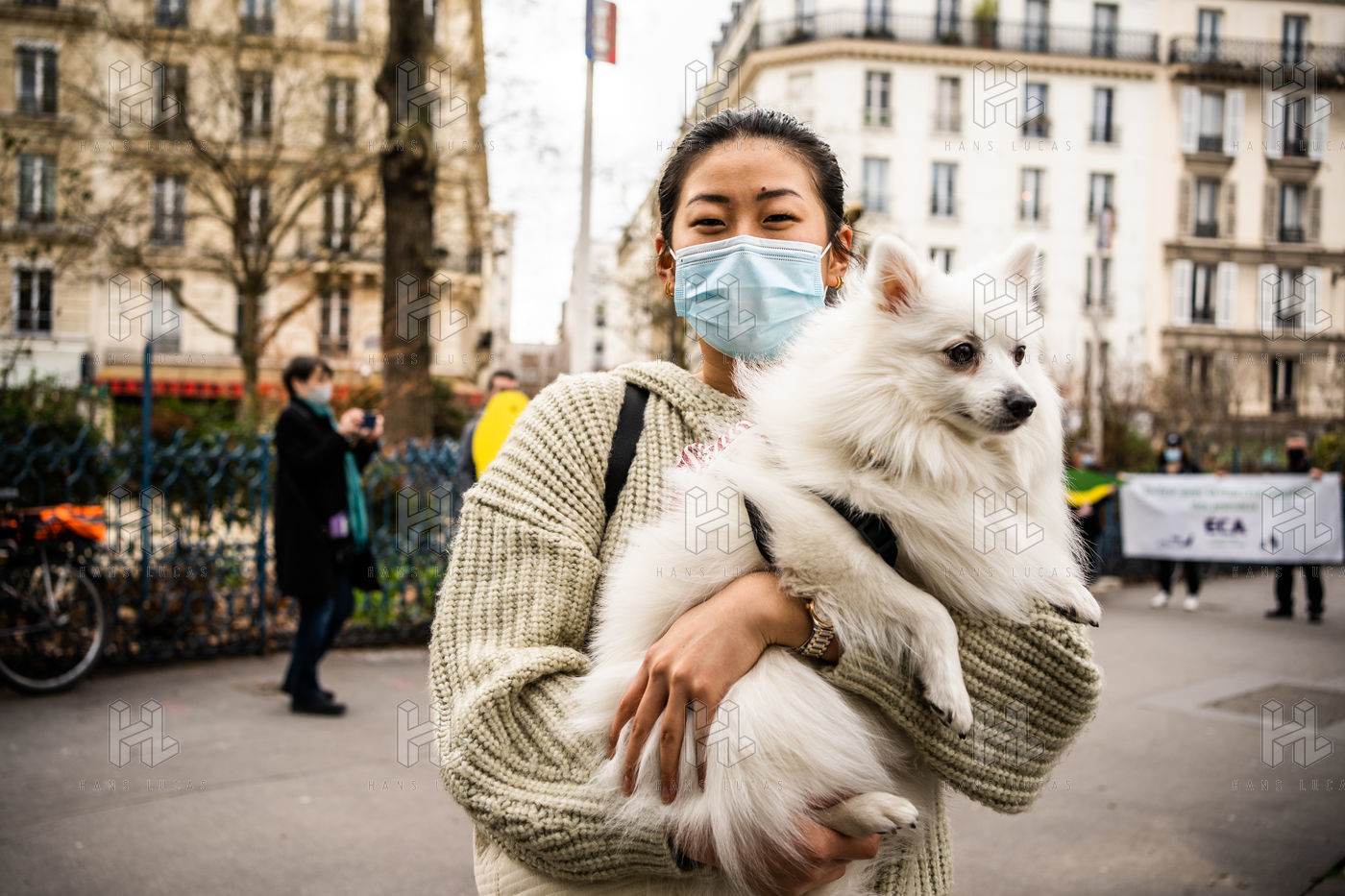 Demonstration against the commodification of animals. Gathering organized by Évolution Condition Animale (ECA) in front of the City Hall of the 12th arrondissement, to demand that the City of Paris no longer host shows and exhibitions sales of live animals on sites it owns or manages, including the Animal Expo show at the Parc Floral, Paris February 23, 2021.