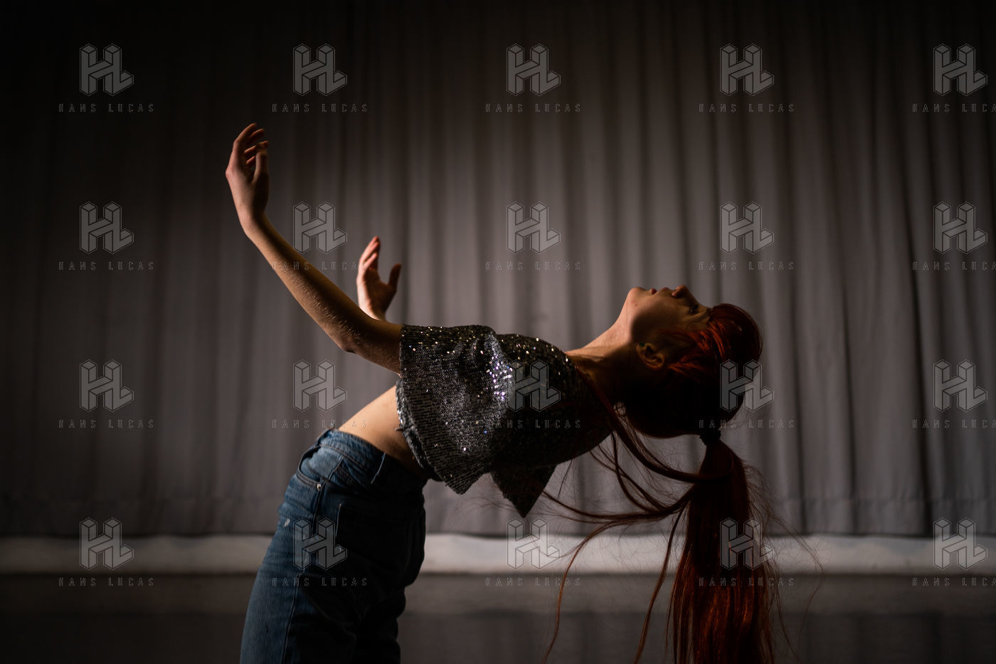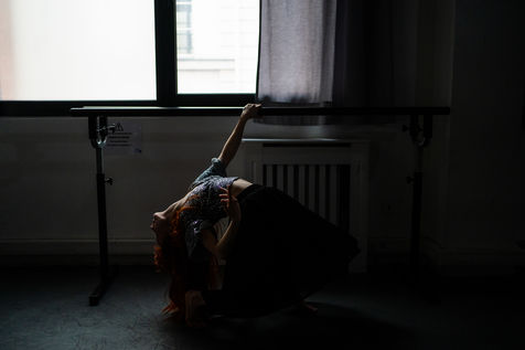 Portrait of Adèle Duportal, dancer and artistic director of the Plumea company, dancing in a rehearsal room during the closure of theaters and concert halls due to sanitary measures taken as part of the coronavirus epidemic in France, Paris 12 March 2021.
