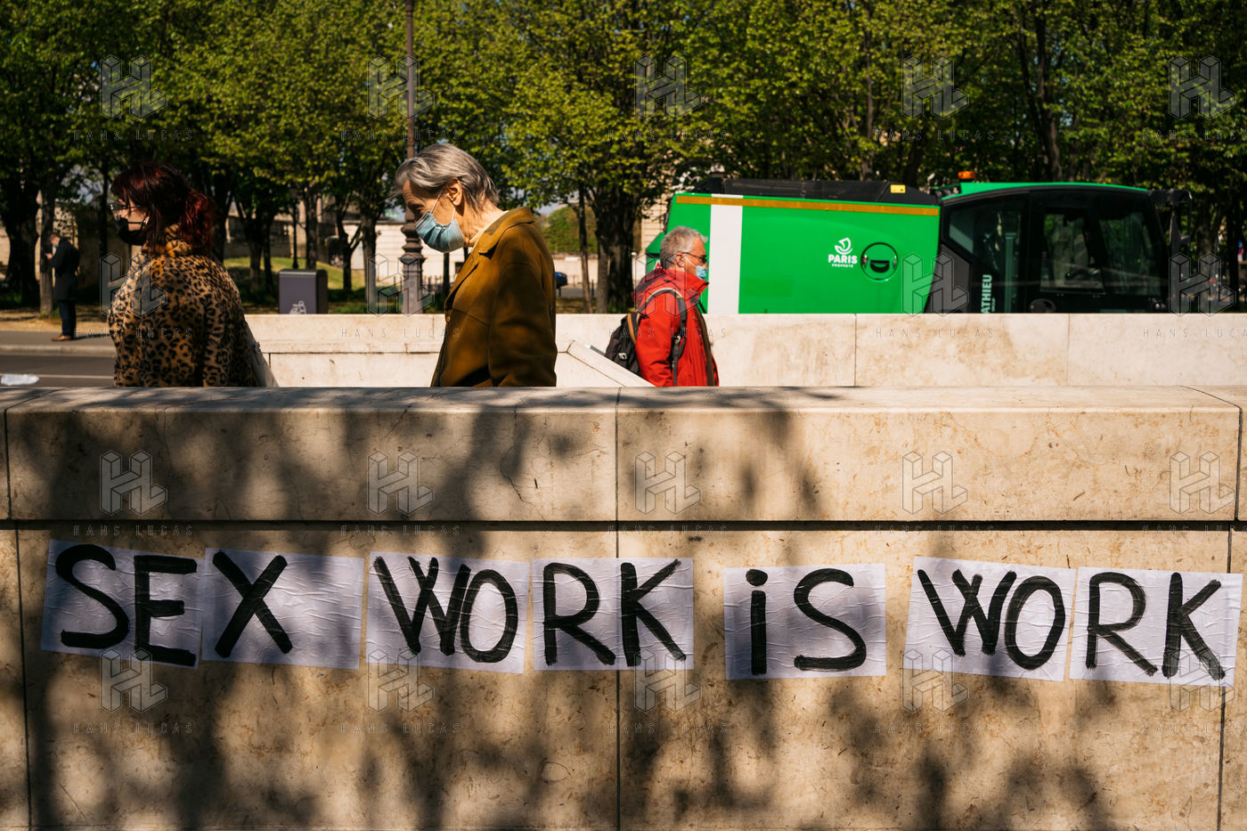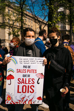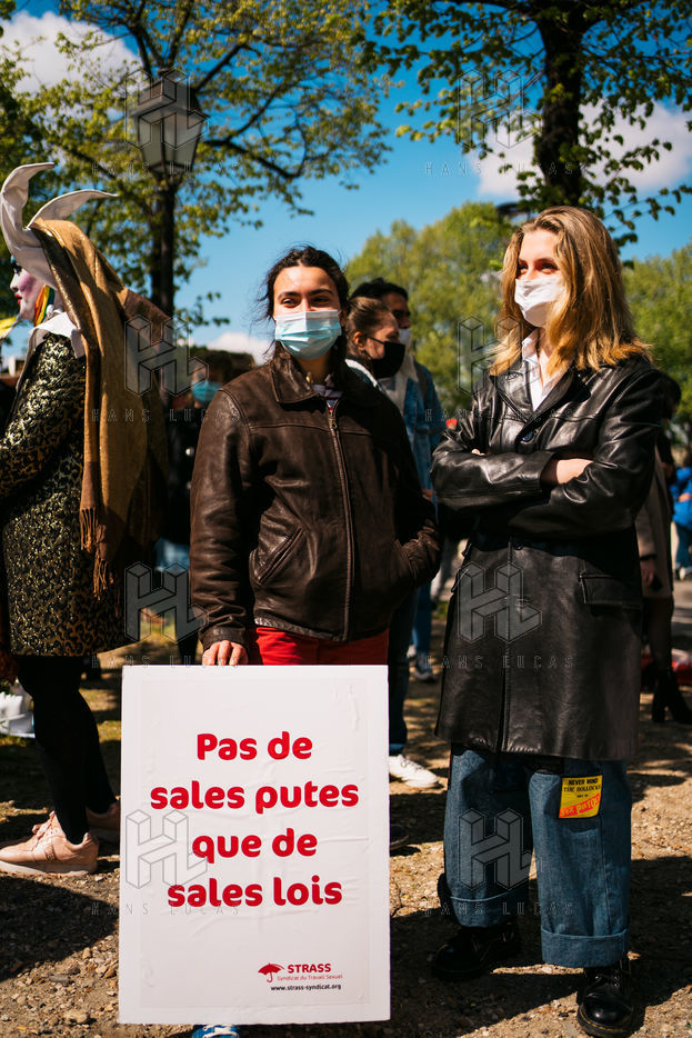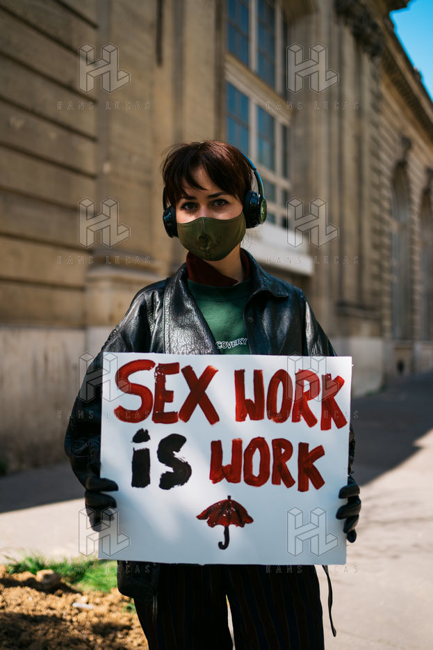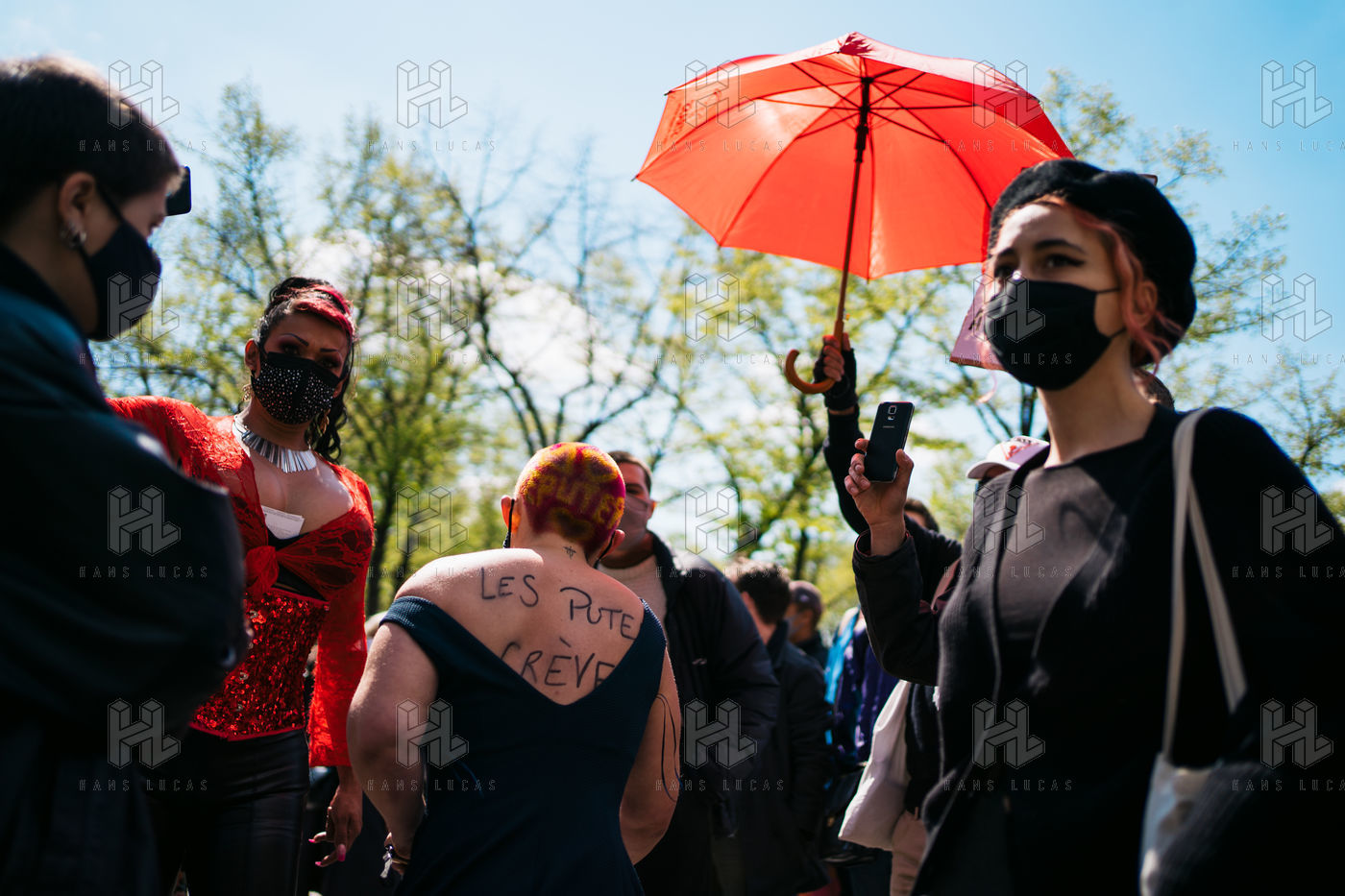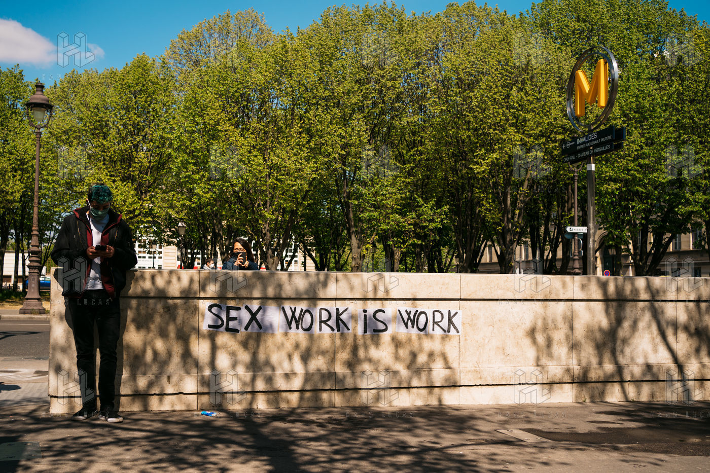 Rally against the law penalizing the client of prostitution. It has been 5 years since the law penalizing clients has been in force. Sex workers through STRASS, the sex workers' union, are gathering at the Place des Invalides, in front of the National Assembly to demand a total decriminalization of sex work, Paris, April 13, 2021.