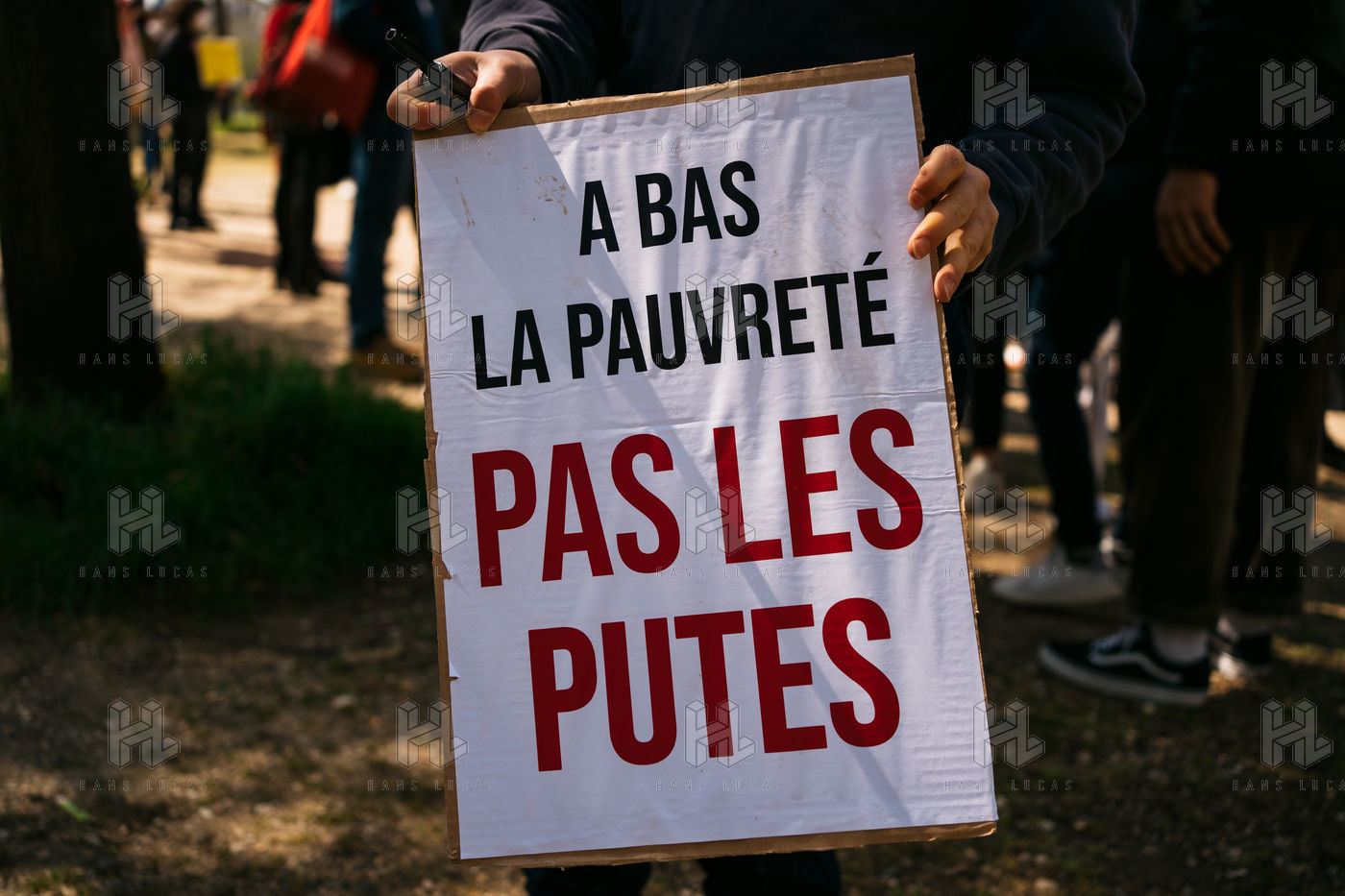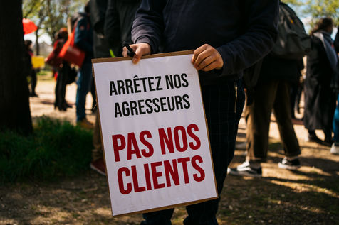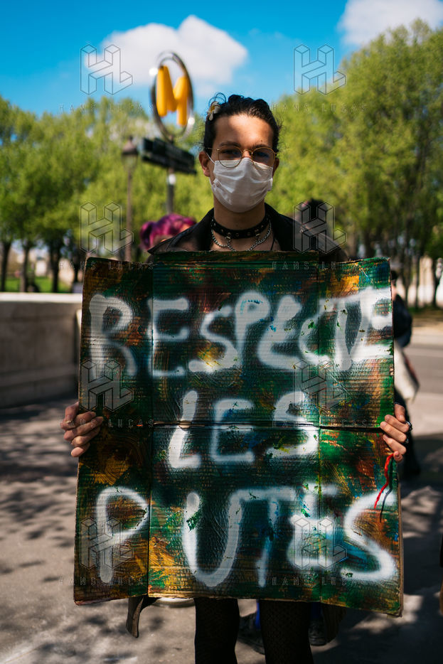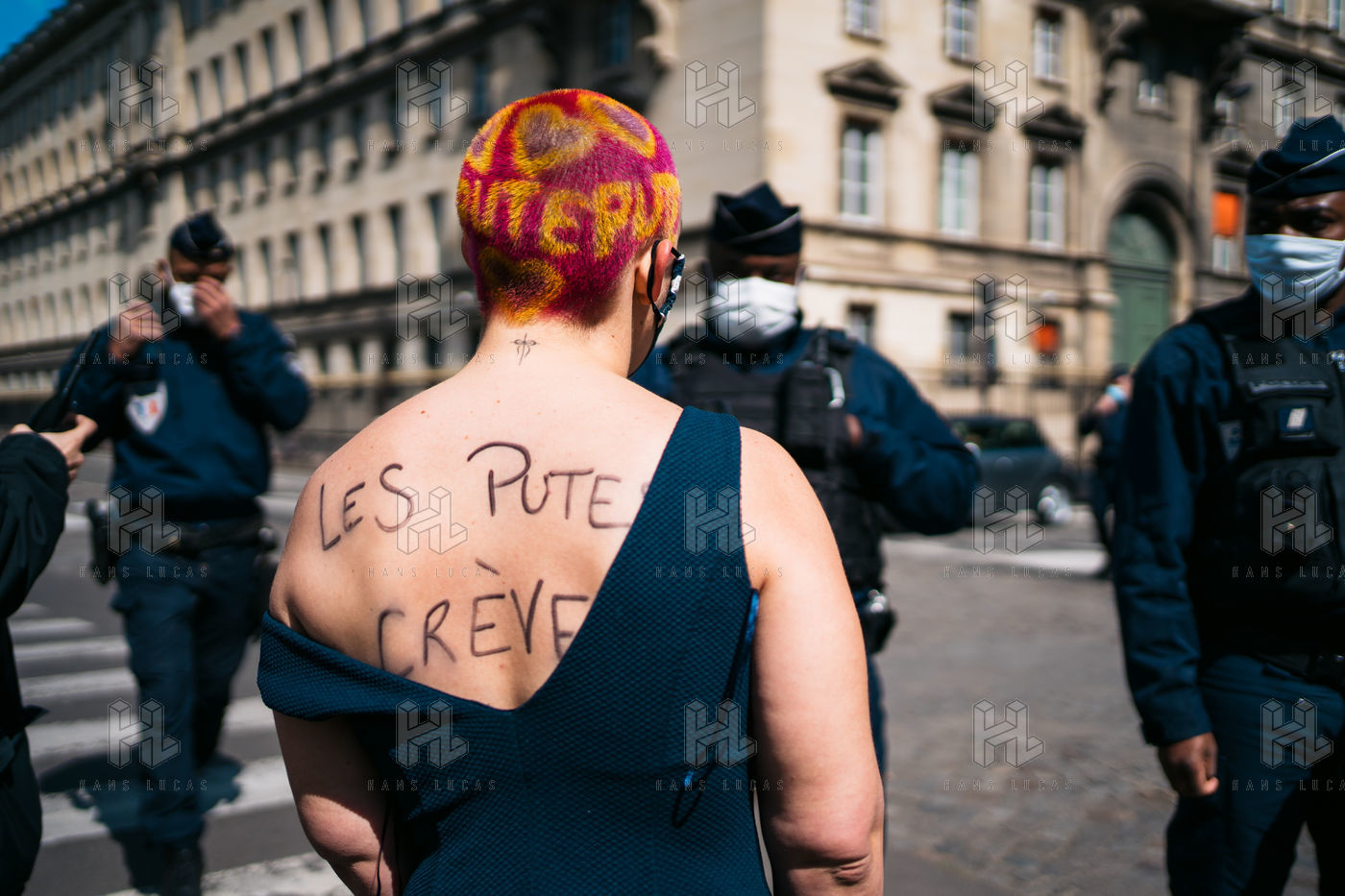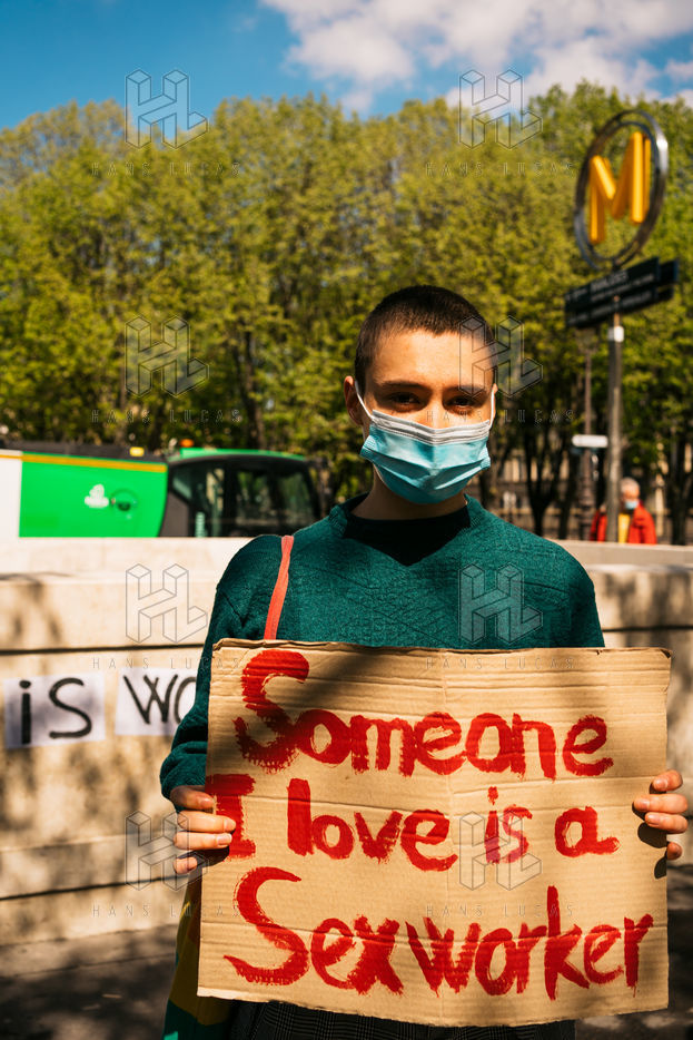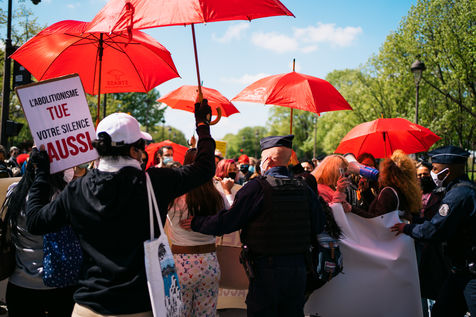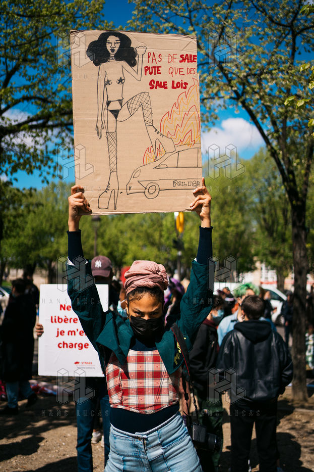 Rally against the law penalizing the client of prostitution. It has been 5 years since the law penalizing clients has been in force. Sex workers through STRASS, the sex workers' union, are gathering at the Place des Invalides, in front of the National Assembly to demand a total decriminalization of sex work, Paris, April 13, 2021.