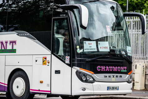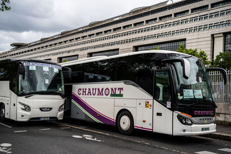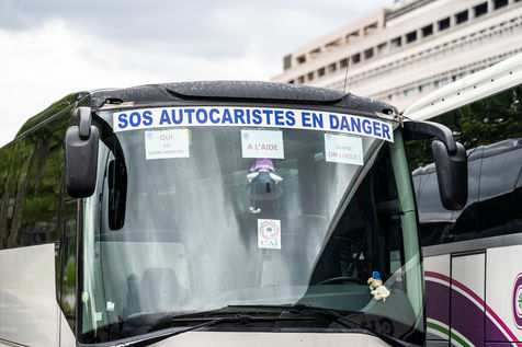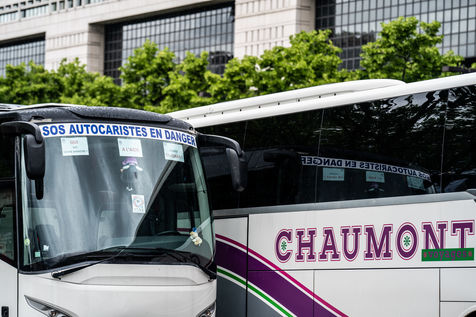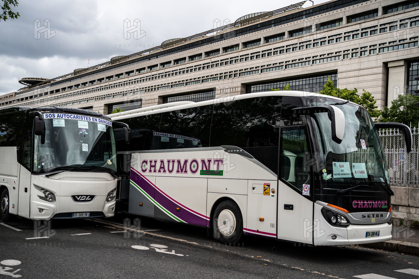 Demonstration organized by the CAI ( Independent Bus Operators Collective ) to ask for help at the doors of the Ministry of Economy and Finance of the French Republic, Paris 26 May 2021.