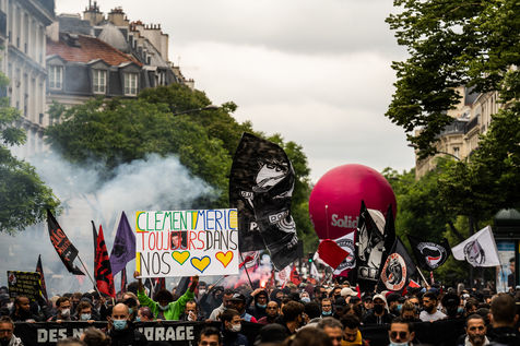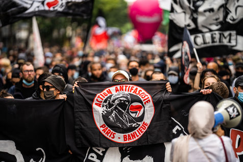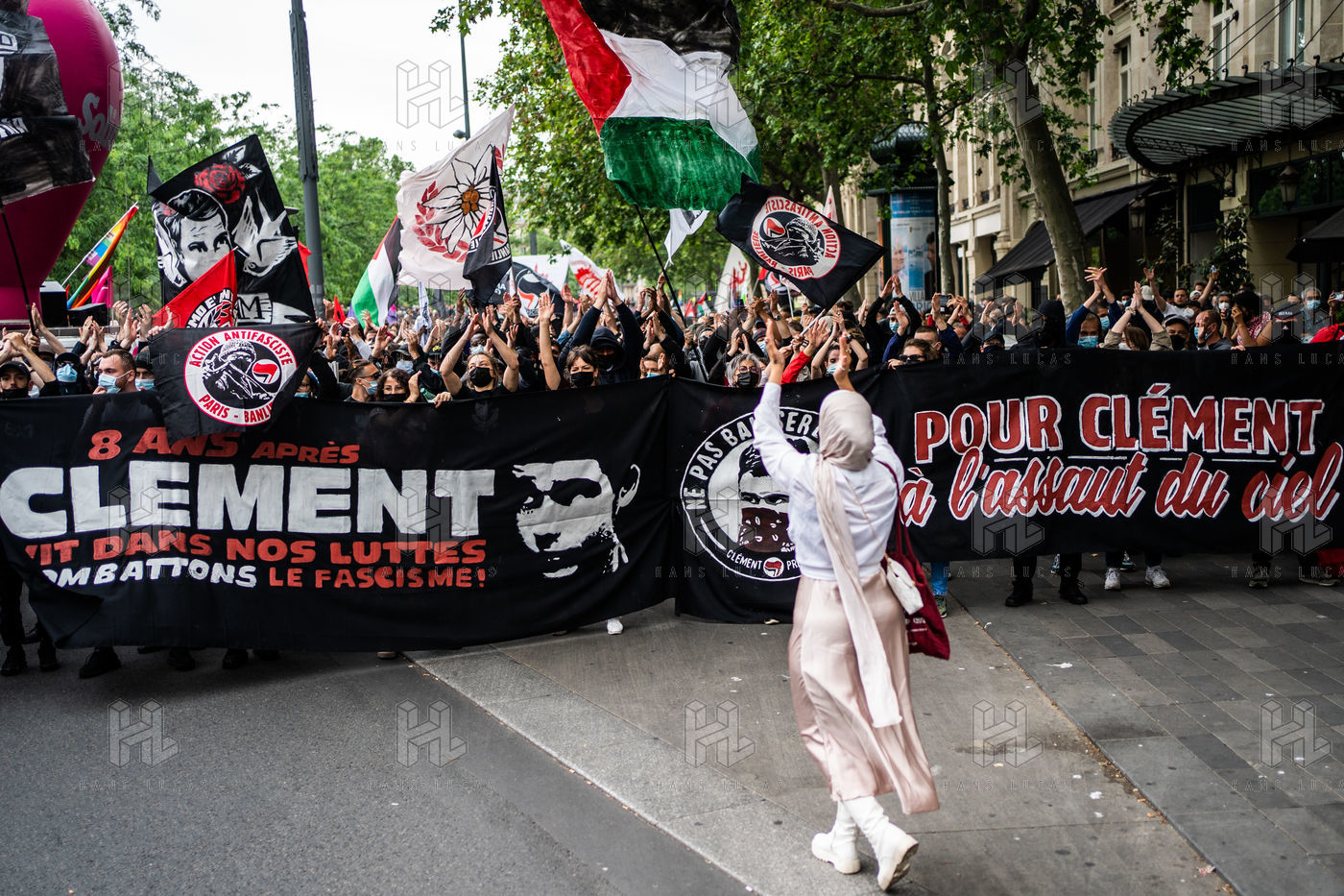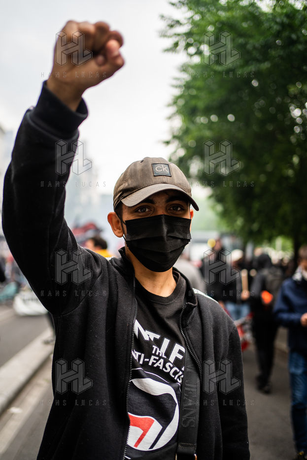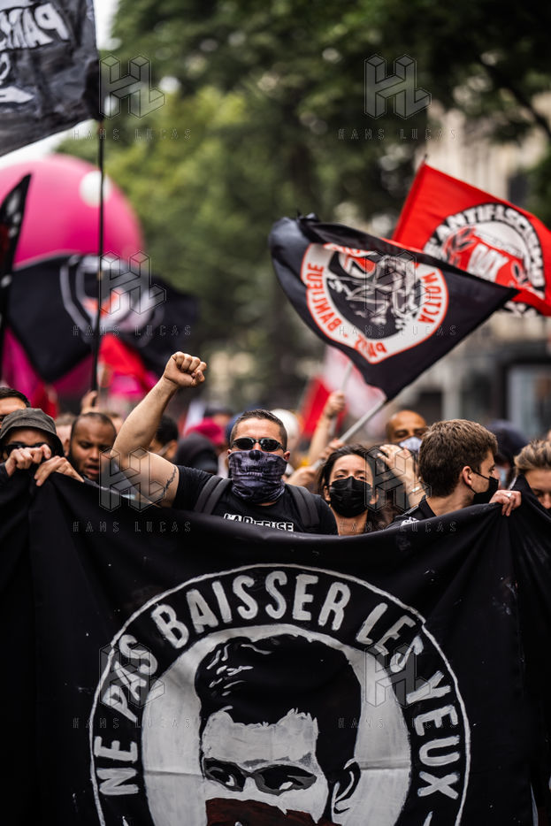 Manifestation antifasciste en hommage à Clément Méric, militant antifasciste mort à la suite d'une rixe entre un groupe de skinheads d'extrême droite nationaliste et un groupe d?extrême gauche antifasciste, Paris 05 juin 2021.