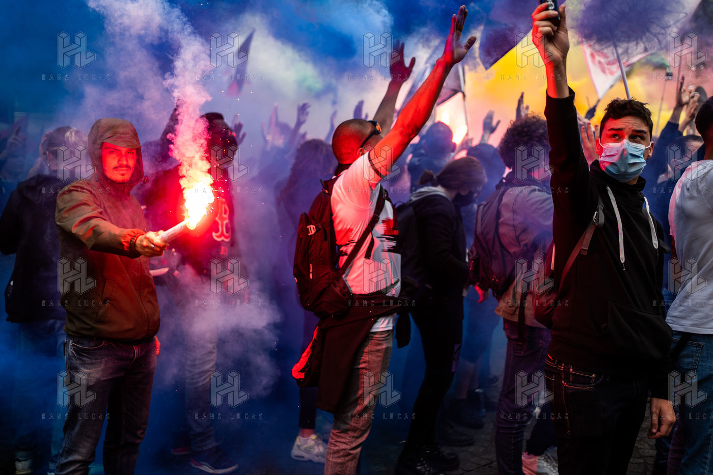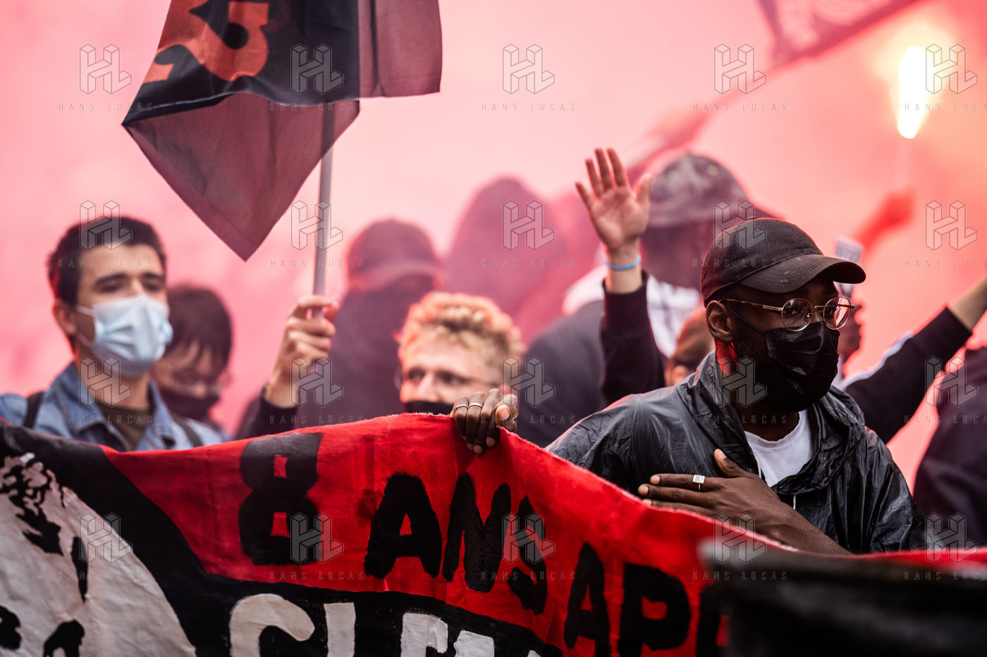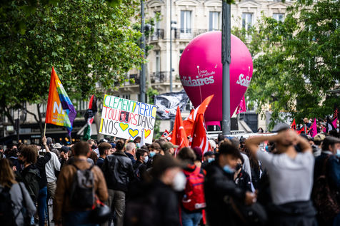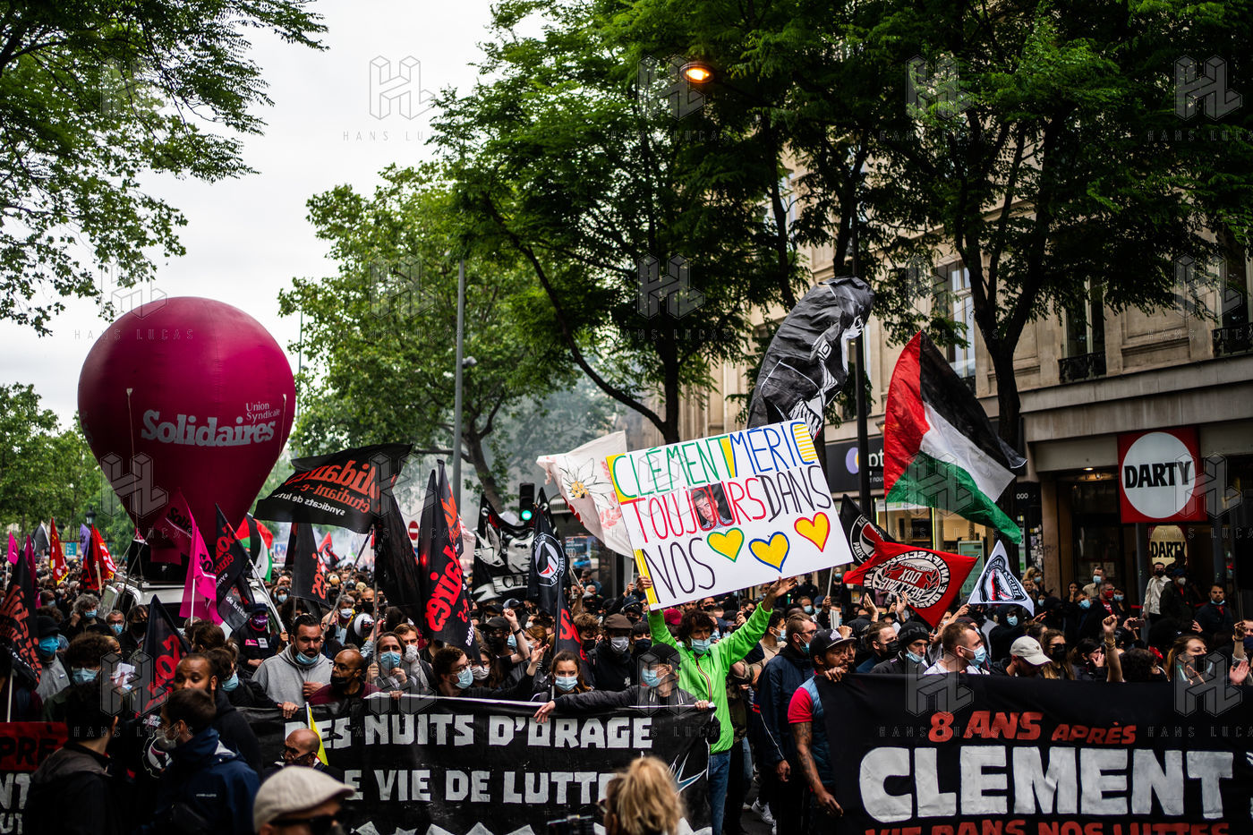 Manifestation antifasciste en hommage à Clément Méric, militant antifasciste mort à la suite d'une rixe entre un groupe de skinheads d'extrême droite nationaliste et un groupe d?extrême gauche antifasciste, Paris 05 juin 2021.