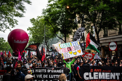 Antifascist demonstration in honor of Clément Méric, an antifascist activist who died following a brawl between a group of far-right nationalist skinheads and a group of far-left antifascists, Paris June 05, 2021.