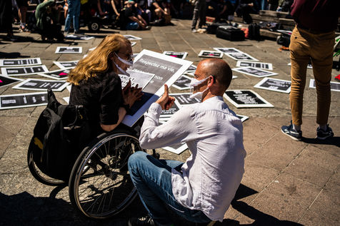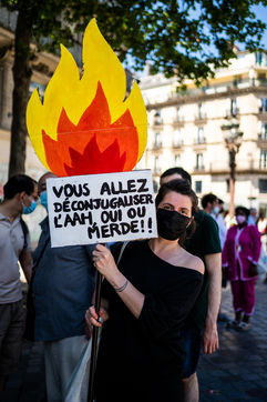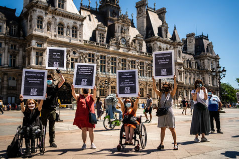Rally organized by Act Up-Paris for the ADA (adult with disabilities allowance) at the Hôtel de Ville de Paris, Paris 13 June 2021.