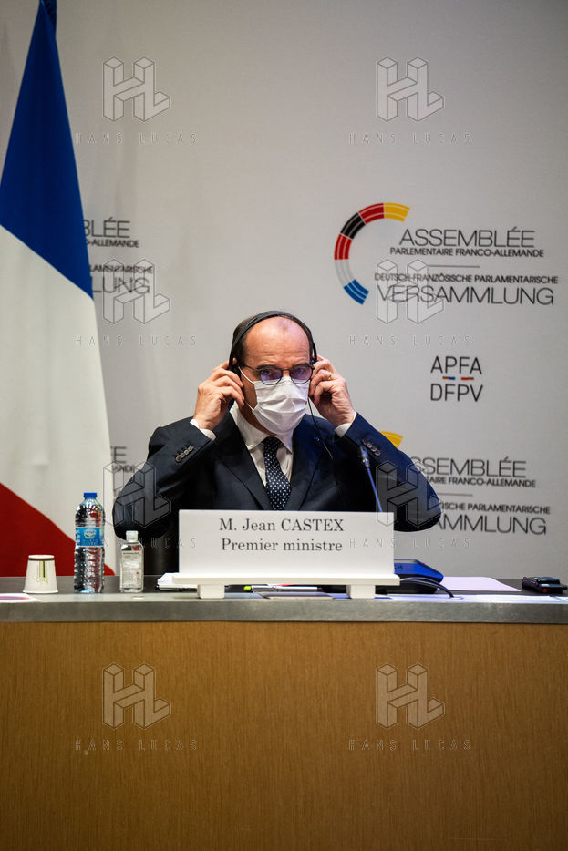 Jean Castex, Prime Minister, visits the National Assembly to take part in the plenary meeting of the Franco-German parliamentary assembly, by videoconference with the German Chancellor Angela Merkel, Paris, June 28, 2021.