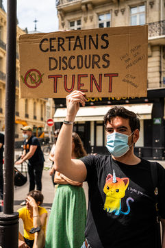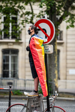 Rally against homophobia in homage to Samuel Luiz with the motto "We don't want to die because we are faggots", on the Pierre Brisson square in front of the Spanish embassy in Paris, Paris 11 July 2021.