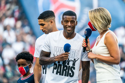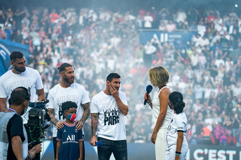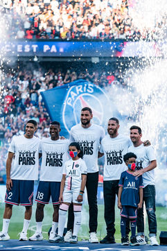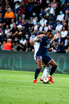 Match of the French Ligue 1, French soccer championship, between Paris Saint Germain and Racing Club de Strasbourg Alsace, at the Parc des Princes stadium, Paris 14 August 2021.